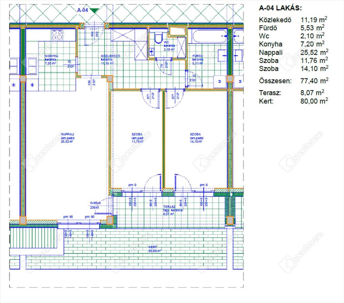 - Lakások Paraméterei: Nappali + 1 szoba 63m2-en, Nappali + 2 szoba 77 m2-en, Nappali + 2 szoba 100 m2-en 33 m2-es terasszal. Minden lakáshoz nagy alapterületű félig nyitott, félig zárt erkély tartozik, a földszinti lakások pedig kertkapcsolatosak.