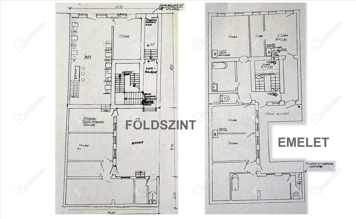 - 14 Szoba illetve különböző funkciójú helyiség található két szinten, az emeleti lakrészek nagypolgári stílusban épültek a századfordulón