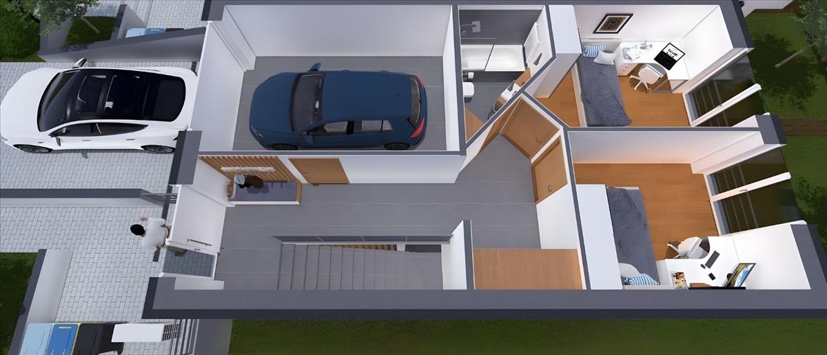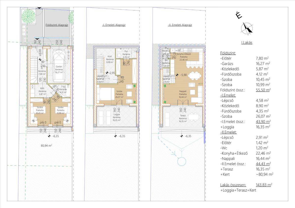 A 143, 83 m²-es, háromszintes lakás átgondolt elrendezésének köszönhetően ideális választás családok számára. a kényelmes utcaszinti bejárattól és garázstól indulva a privát hálószobákon át jutunk el a világos, kertkapcsolatos nappalihoz, amely a mindennapi élet központi tere lehet.