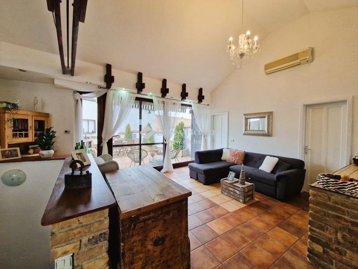 Eladó egy kivételes ingatlan Mohács belvárosában! Jogilag lakás, de jellegében egy önálló családi ház kényelmét nyújtja, közvetlen kertkapcsolattal, teljesen intim atmoszférát teremtve. Az ingatlan egy egylakásos és két üzlethelyiségből álló tarsasházban található. a lakás egyedül használt kis 150m2-es parkosított udvarban található, 105 m2 nagyságú, 3 hálószoba, 2 fürdőszoba, gardróbszoba, és egy amerikai konyhás nappali-étkező található, melyből nyílik egy hangulatos, zárt 45 m2-es terasz. Kellemes hangulatot sugároz az eklektikus stílusú ingatlan, amelyben régi bútorok modern elemekkel keverednek. a hatalmas teraszablakoknak köszönhetően a lakás rendkívül világos, és tágas érzetet kelt. Az ingatlan 20 éve épült, gázfűtéssel és padlófűtéssel rendelkezik, biztosítva az alacsony rezsit. a lakás elosztása, tájolása és elhelyezkedése minden kényelmet biztosít. a lakáshoz külön megvásárolható egy saját 35m2-es dupla garázs. a Spar, iskolák, óvodák, bank és termelői piac mind mind 50-300 m-es körzetben találhatók. a Duna partja mindössze 50 m-re, a természet pedig 2-300 m-re elérhető. Az ingatlan ideális befektetés is, központi elhelyezkedése, mérete és elosztása miatt könnyen kiadható. Az udvar és a garázs pedig ideális megoldást nyújt a parkolásra. FIX 3% lakáshitelre megvehető