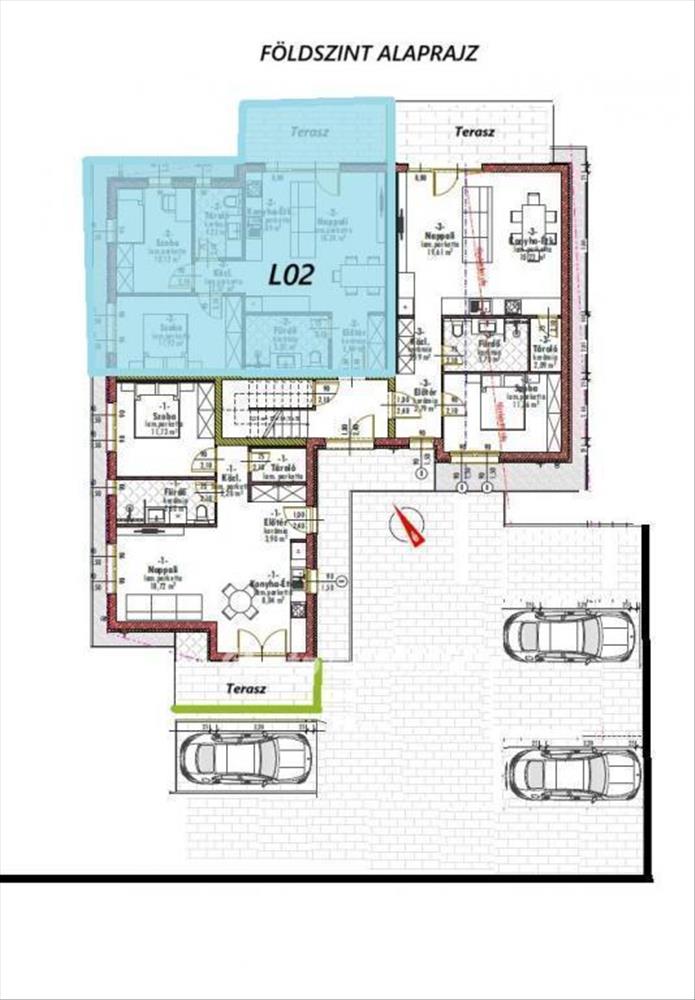 Telekméret (teljes): 720 m2. Telekre épül: két szintes társasház.