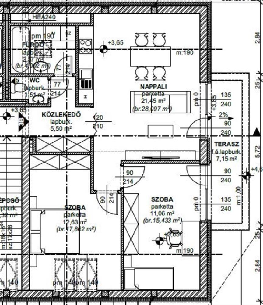 - bruttó 73, 39 m2 + terasz ( nettó 54, 39 m2 lakás+ 7, 15 m2 Terasz),