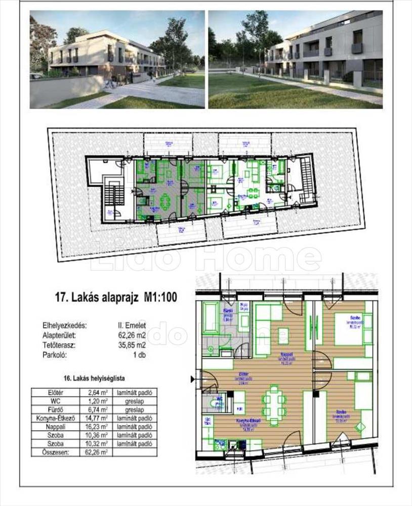 2 Emelet. 17. Lakás alapterülete: 62, 26 m2 + Tetőterasz 35, 85 m2
