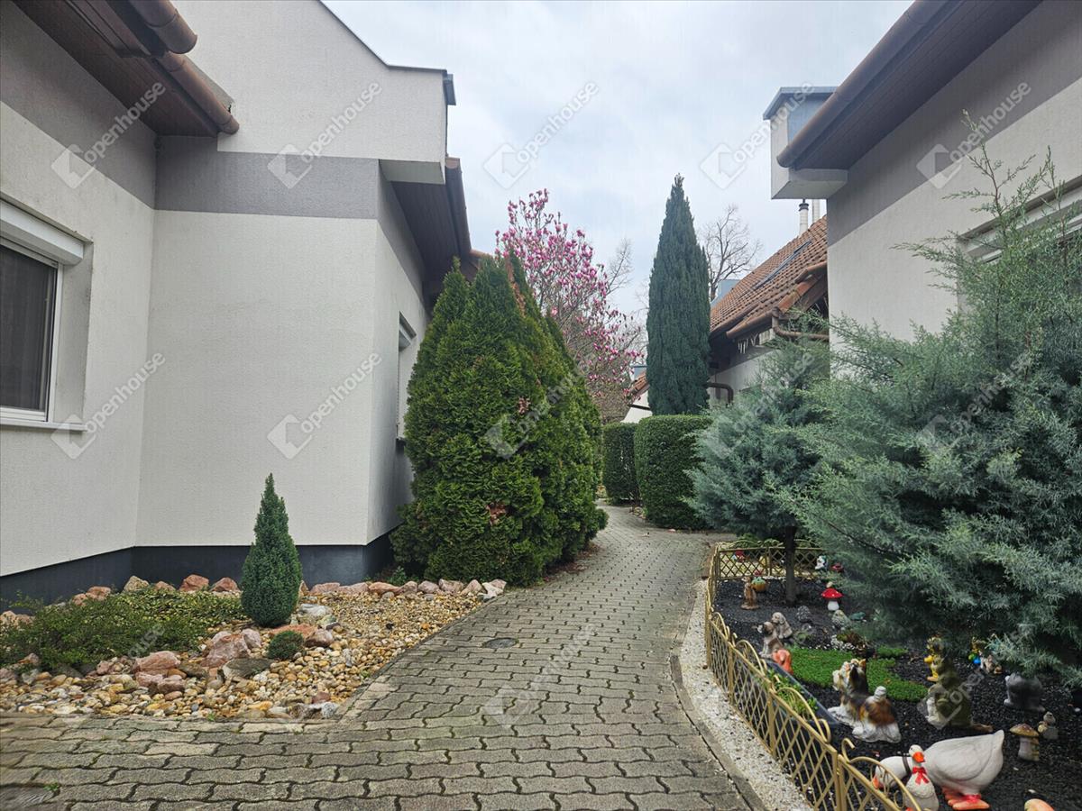 A külső adottságok külön említést érdemelnek: a 18 m²-es fedett terasz kiváló helyszíne a kikapcsolódásnak, a saját kert pedig lehetőséget ad pihenésre, kertészkedésre vagy családi programokra. a telken kerti faház is található, valamint saját kocsibeálló is rendelkezésre áll.