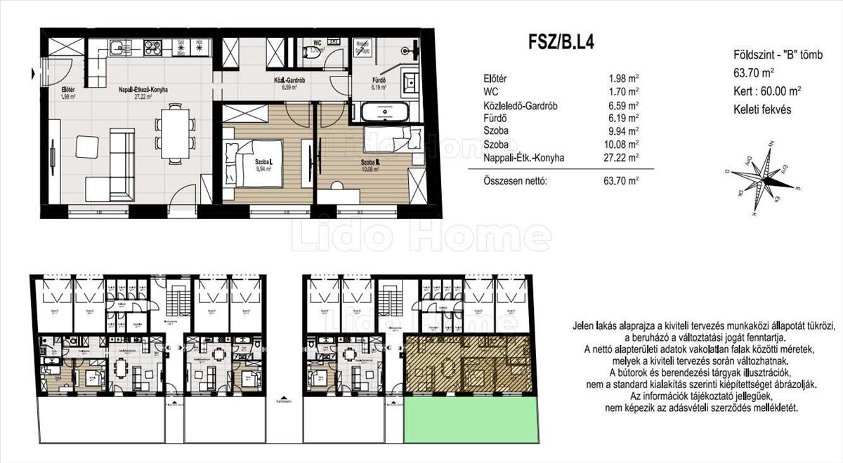 Földszint 1. Lakás: 63, 7 m² + 60 m² kertkapcsolat.