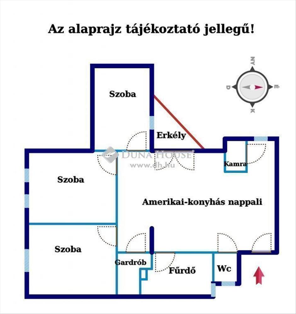 - amerikai konyhás nappali, fürdő, külön wc, gardrób, kamra