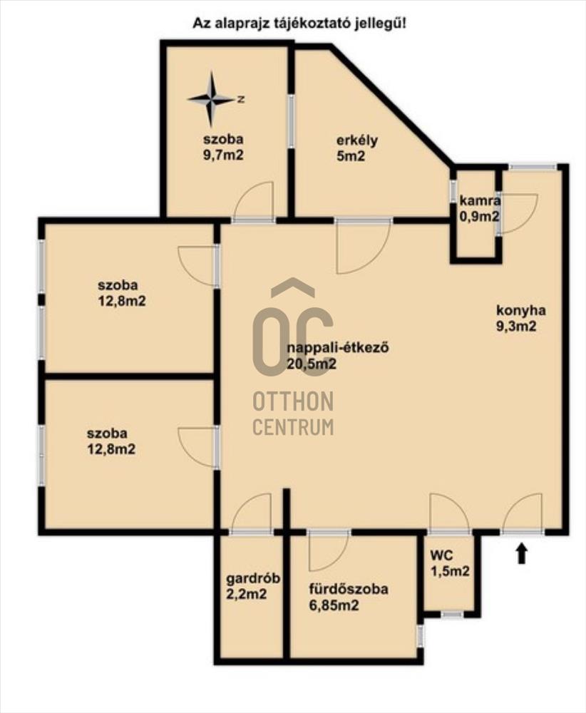 Helyiségek: 3 hálószoba, nappali-étkető-konyha, kamra, gardrób, fürdőszoba, külön wc kézmosóval és nyugati tájolású erkély.