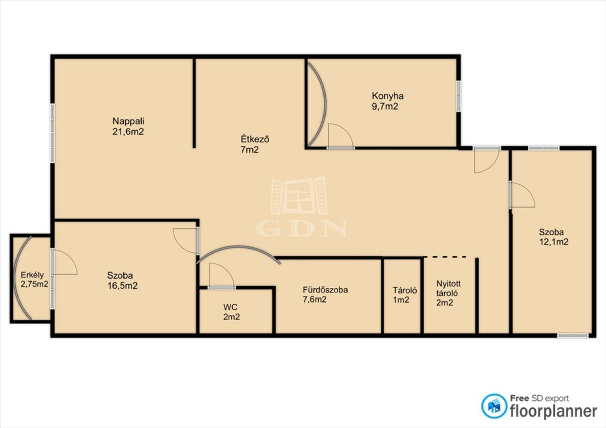Eladó egy klimatizált, 76 m²-es, nappali + 2 szobás, amerikai konyhás étkezős lakás Nagykanizsa Belvárosában, liftes társasházban.