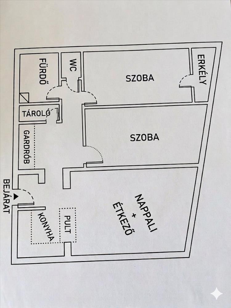 - Amerika konyhás nappali + 2 szoba
