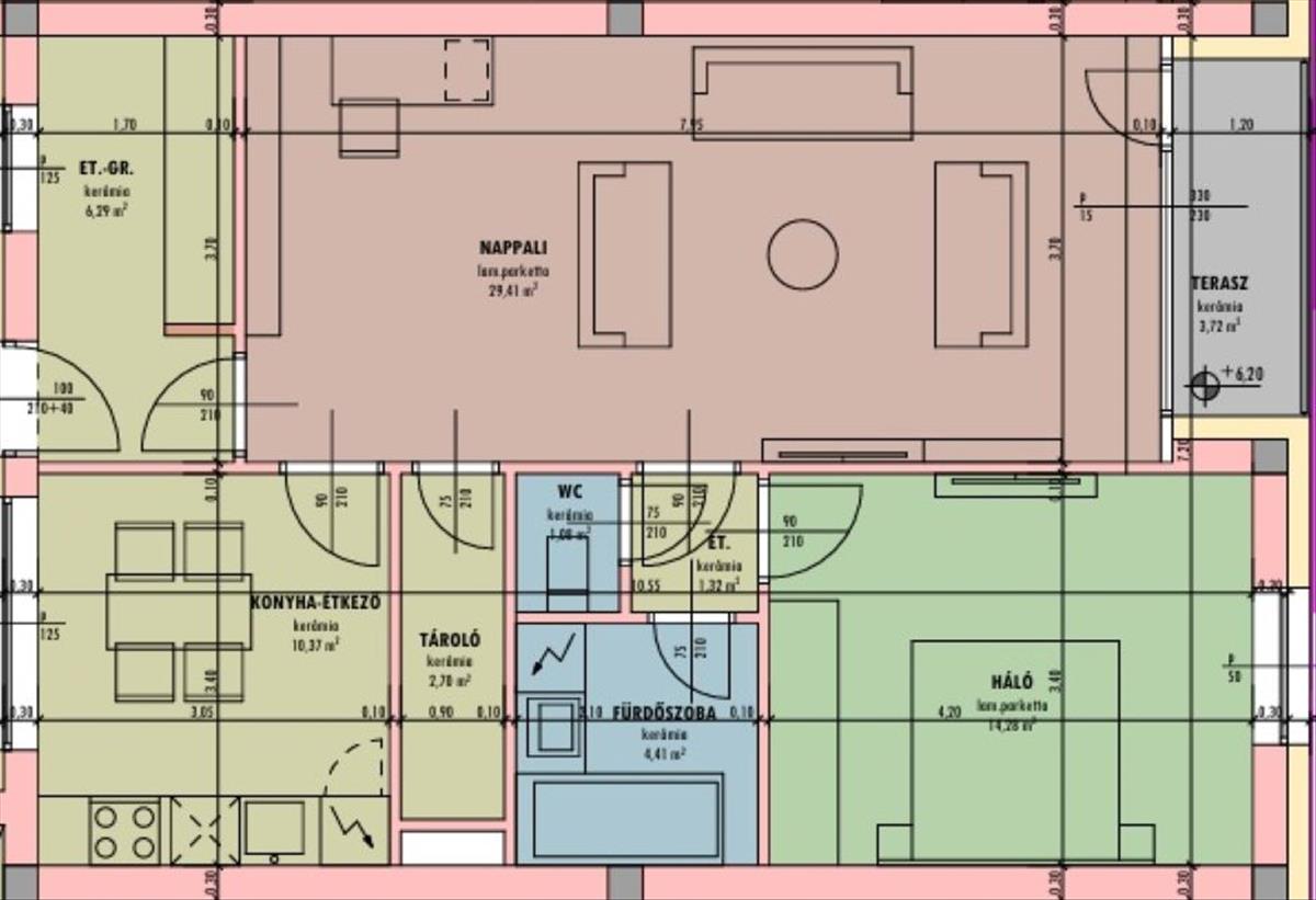 - fürdőszoba wc külön, előtér, tároló v. Gardrób