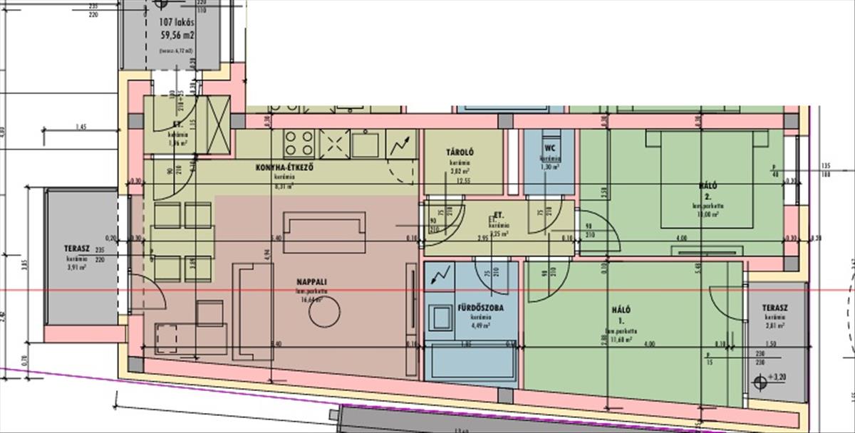 - amerikai konyhás nappali + 2 külön nyíló hálószoba