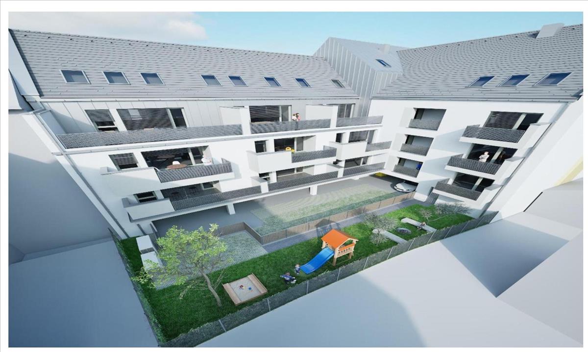 Társasház 4 lakószinten 26 lakással, 2 szintes teremgarázsban 26 parkolóállással, 1 irodával