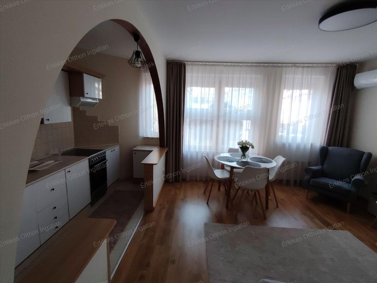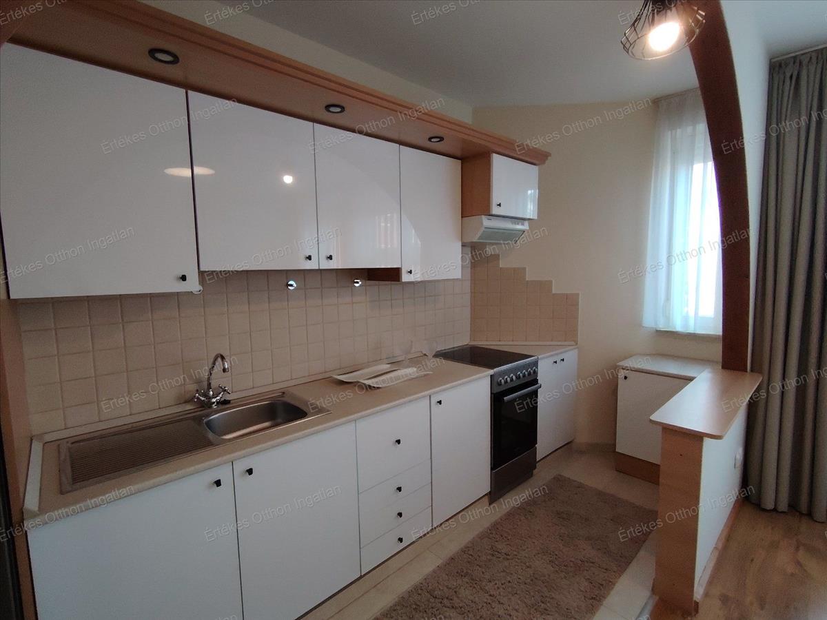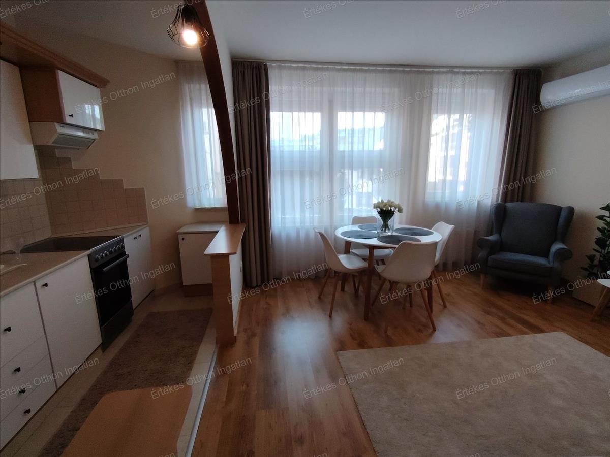 Csodaszép amerikai konyhás nappali, melyben a konyha részen is található ablak, átadó pulttal van csupán a elválasztva a konyha az étkező-, nappalitól. Déli fekvésűek az ablakok, ezáltal mindig világos, napfényes.