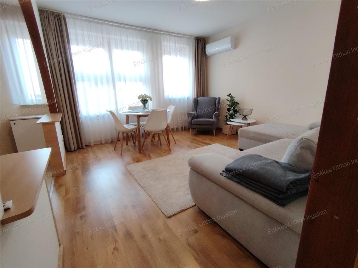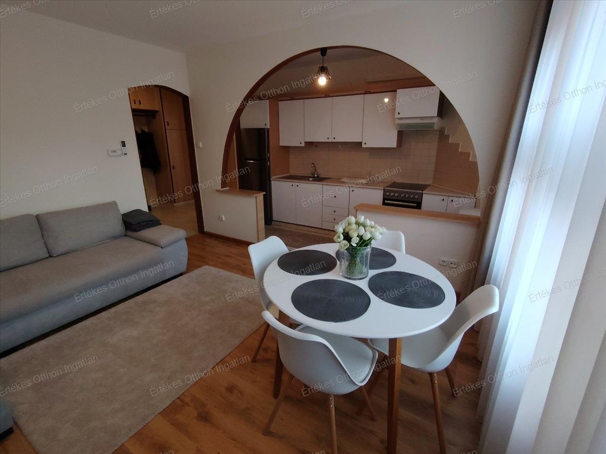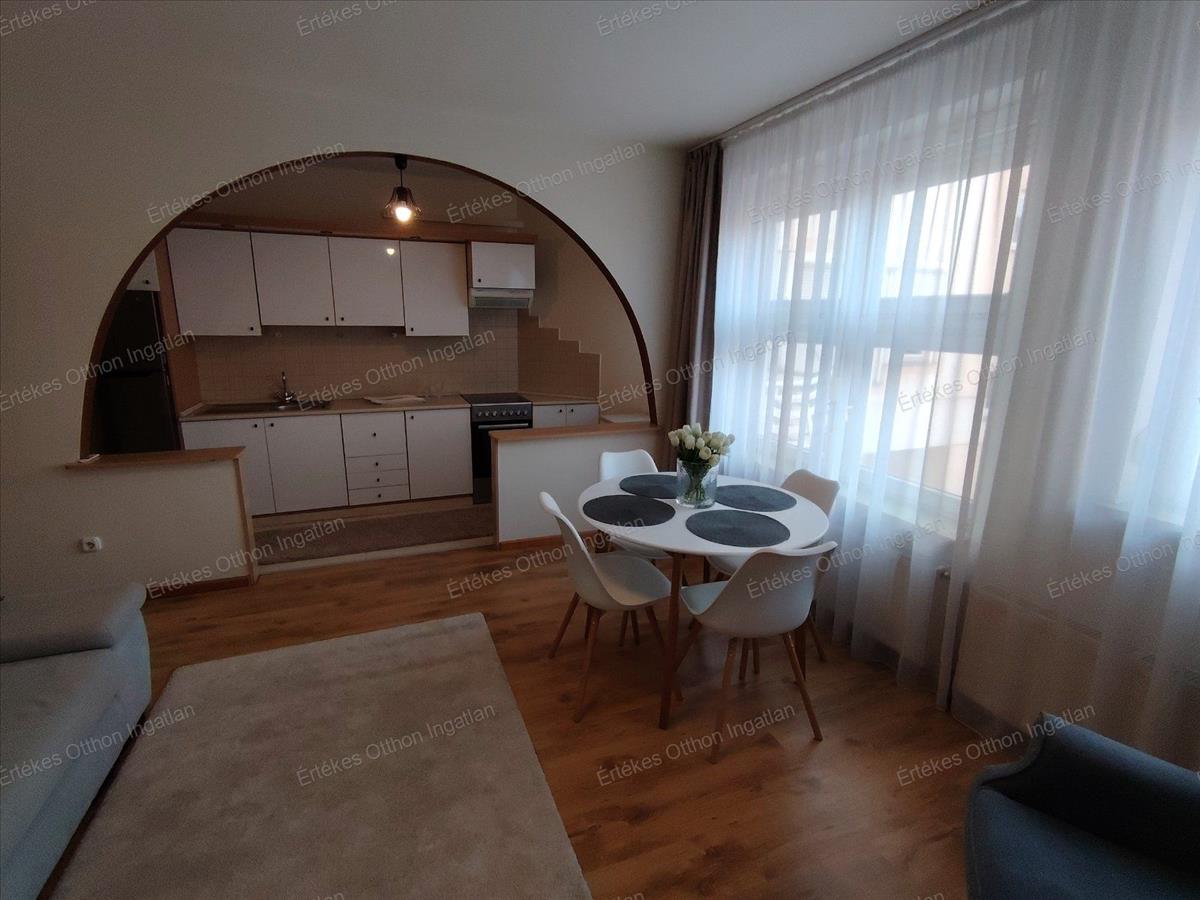 Csodaszép amerikai konyhás nappali, melyben a konyha részen is található ablak, átadó pulttal van csupán a elválasztva a konyha az étkező-, nappalitól. Déli fekvésűek az ablakok, ezáltal mindig világos, napfényes.