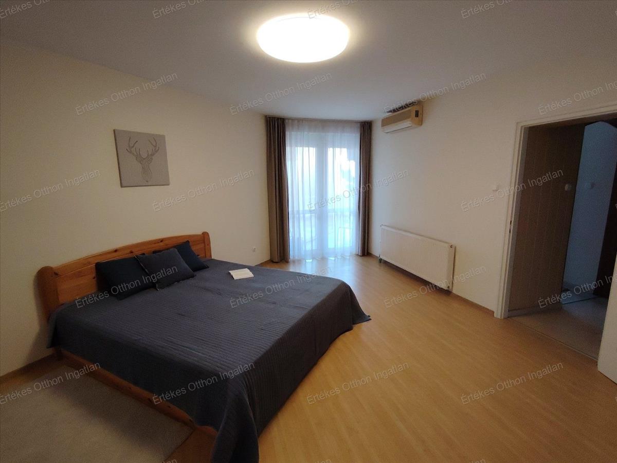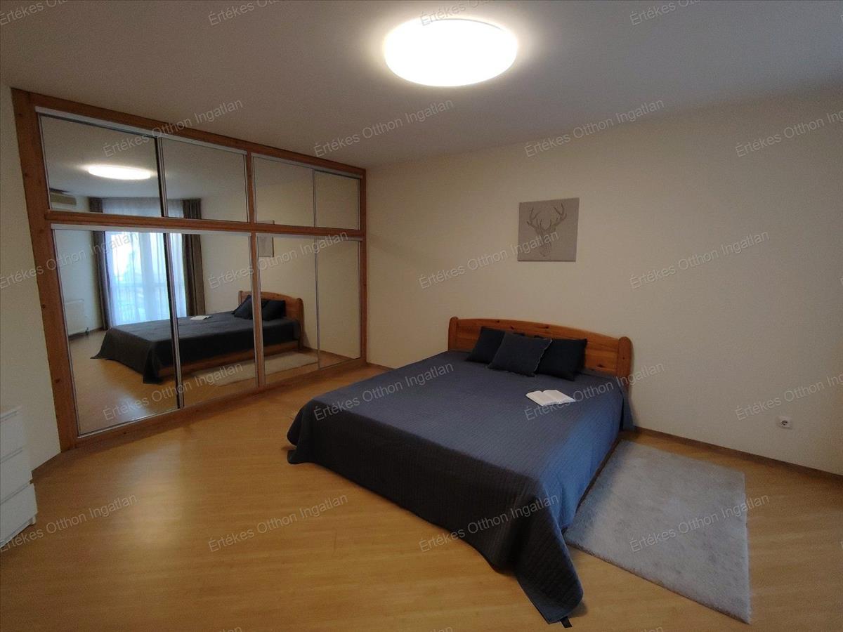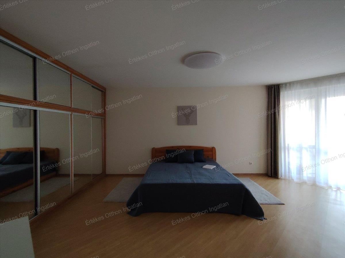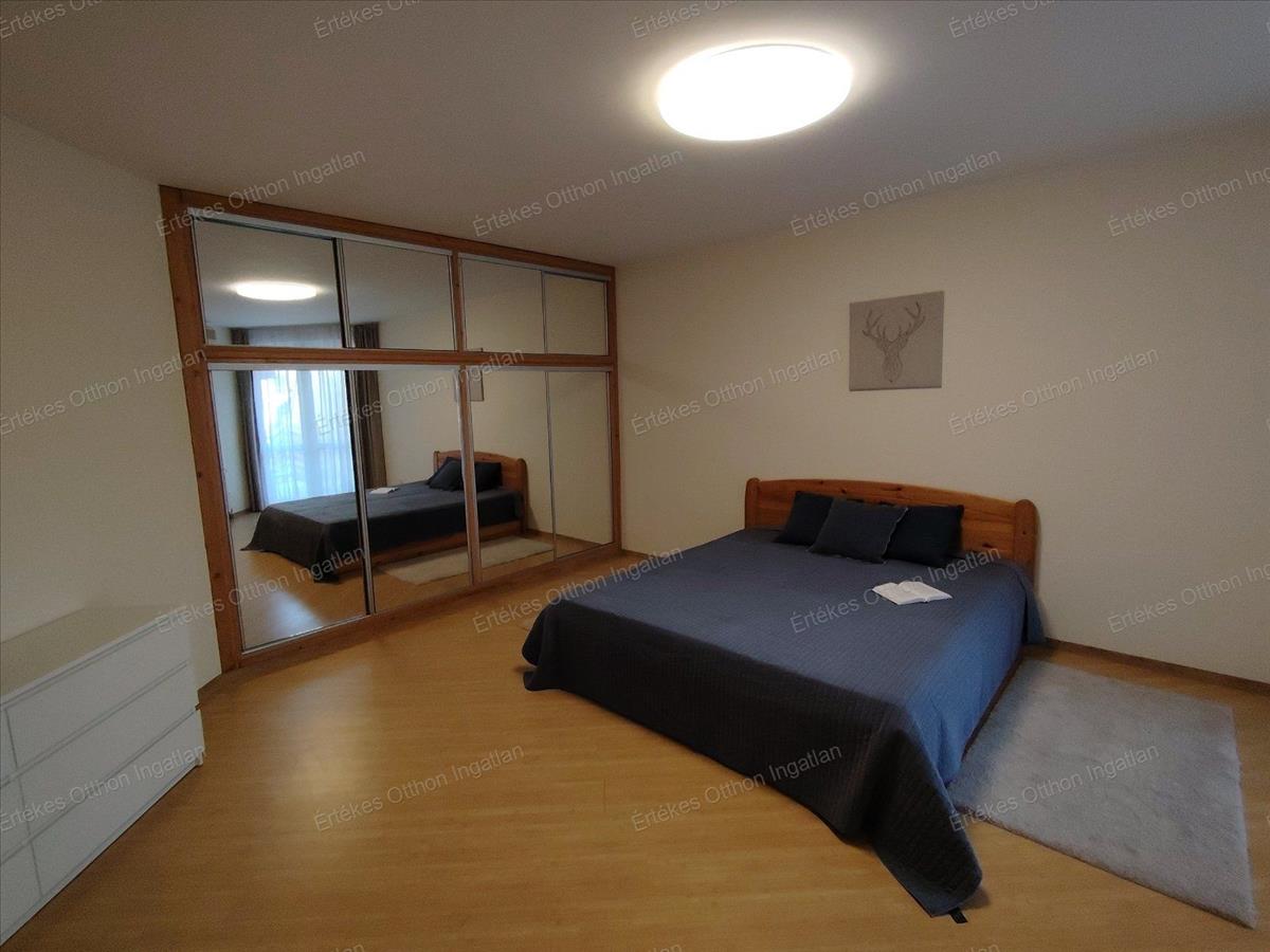 A hálószoba méretét tekintve kialakítható igény szerint két kisebb háló is ha az igénye ezt kívánja. a hálóban hatalmas tükrös beépített szekrény található, melyben mindennek van helye.