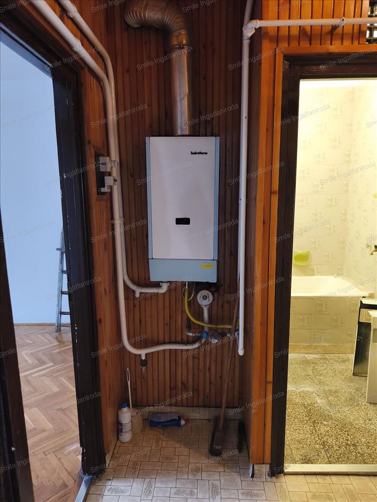 A fűtés gázkazánról, radiátoros hőleadással megoldott.