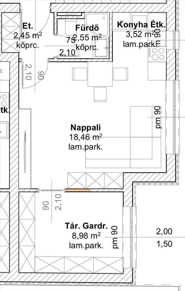 - nettó alapterület: 36 m2, 1 szobás, tároló - amely akár dolgozószobának, hálónak is használható