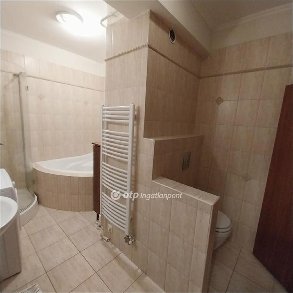 Tágas, igényes fürdőszoba sarokkáddal, zuhanyzóval és Wc-vel ellátott.