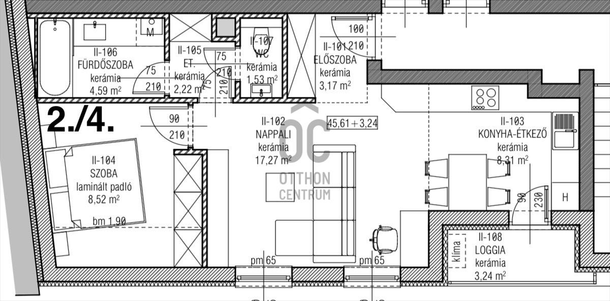 4. Lakás: 45, 61 nm + 3, 24 nm loggia