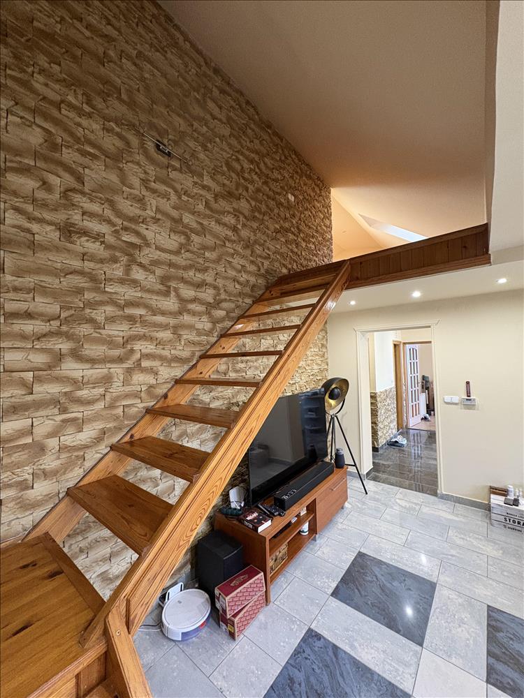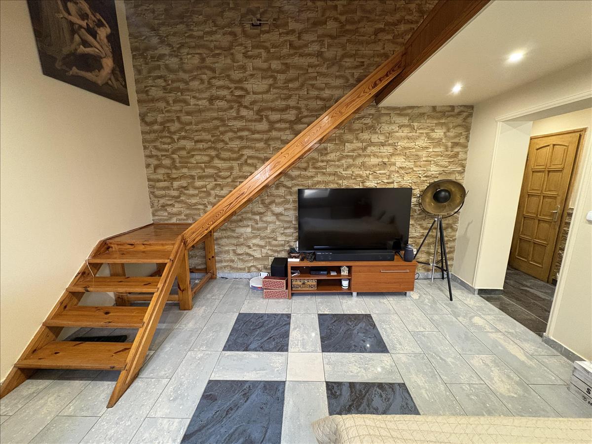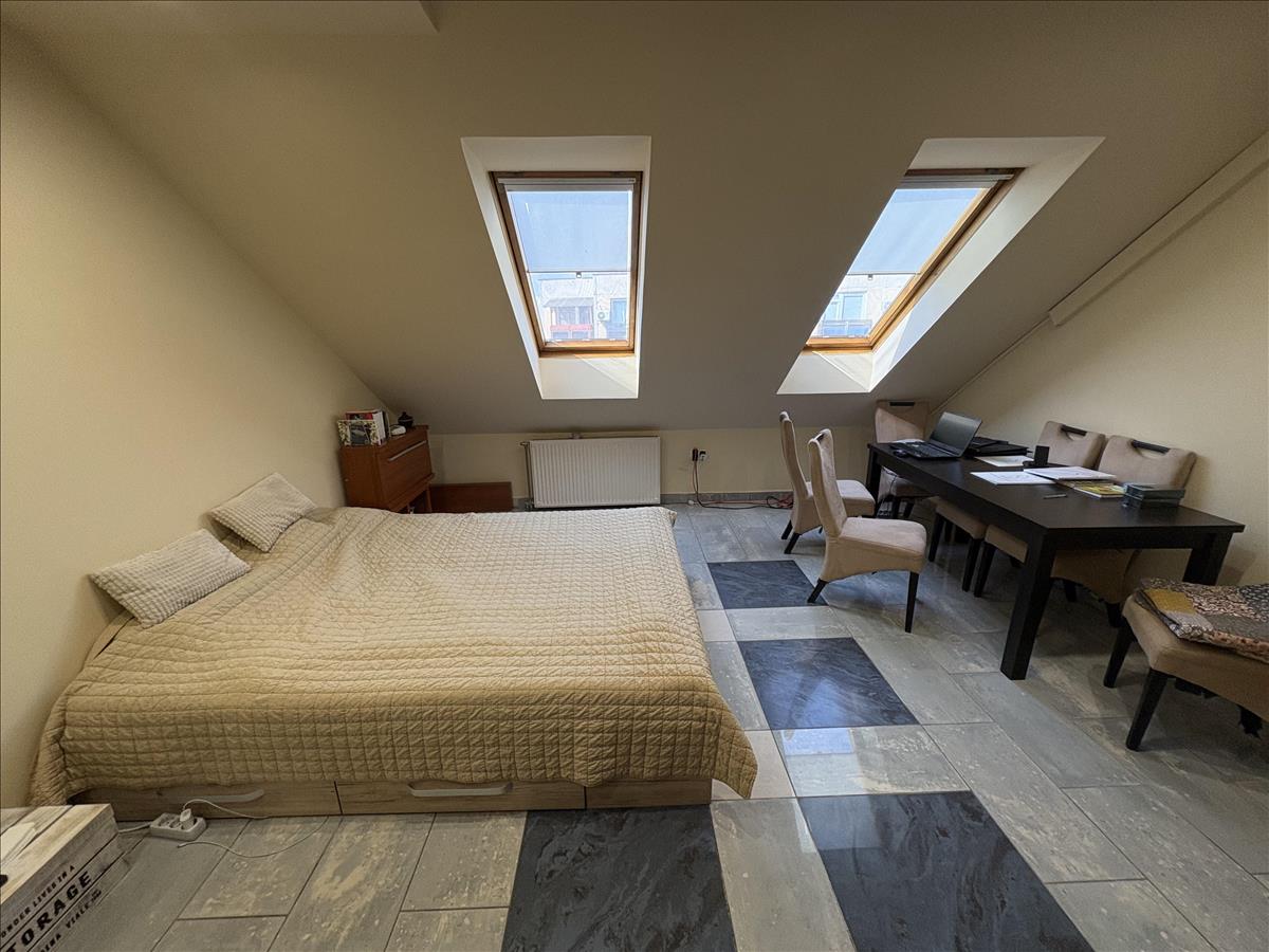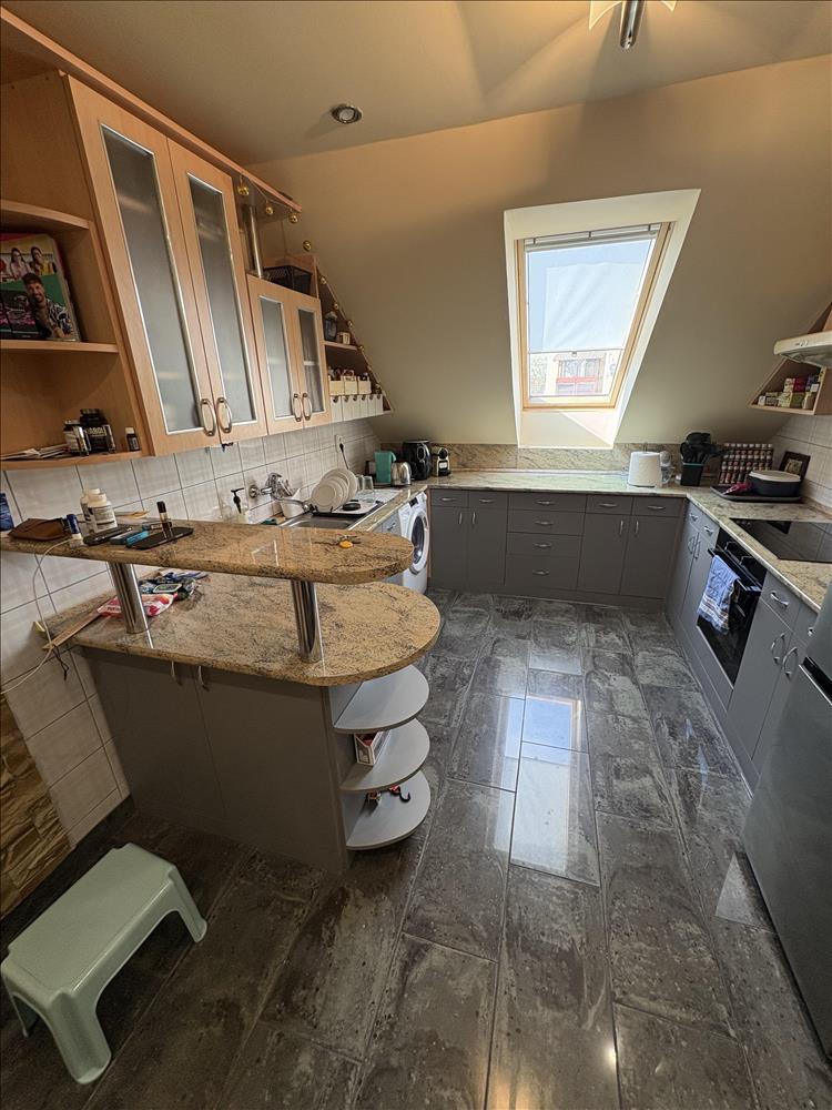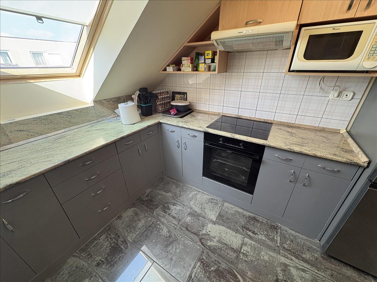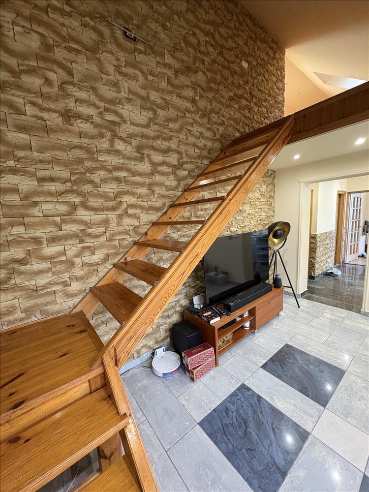 - Elosztása: Alsó szinten: előszoba, konyha, fürdőszoba+ Wc (külön helyiségben van ) nappali+ 1 szoba. Tetőtérben: 1 szoba van. Erkélye nincs a lakásnak.