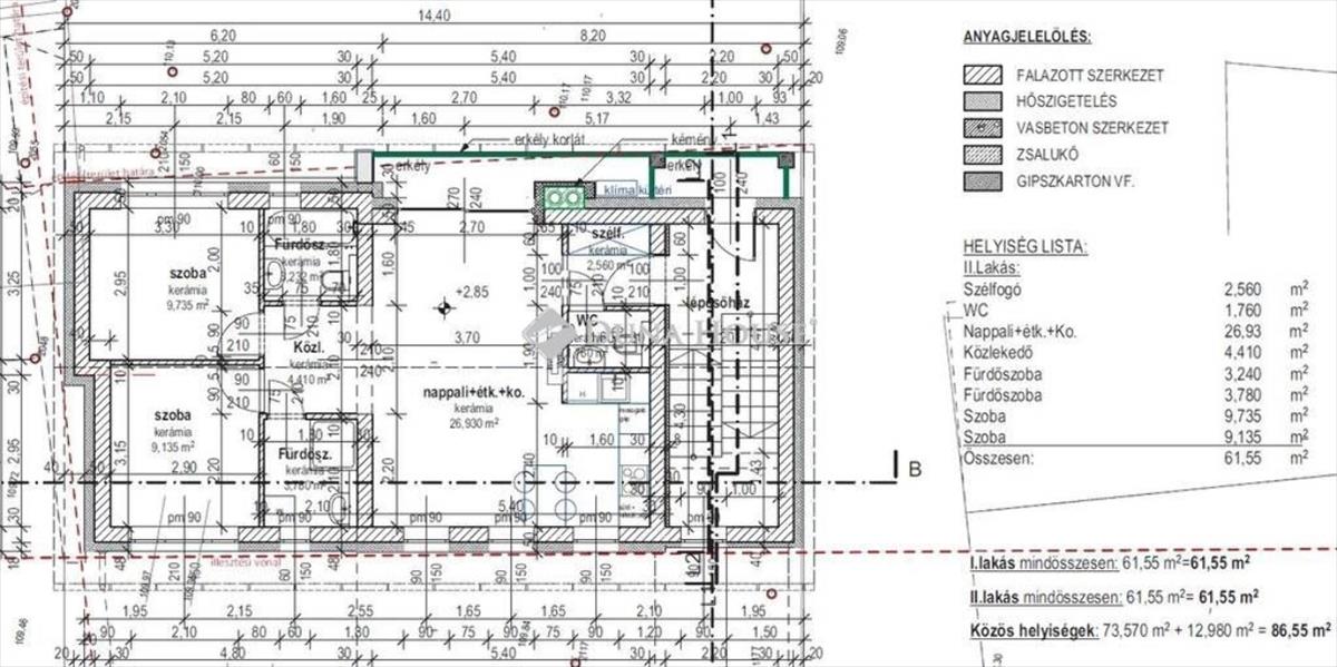 Lakás:Szoba 9, 135 m2Szoba 9, 735 m2Fürdőszoba 3, 780 m2Fürdőszoba 3, 240 m2Közlekedő 4, 410 m2Nappali+étkező. +Konyha 26, 93 m2WC 1, 760 m2Szélfogó 2, 560 m2Összesen: 61, 55 m2Közös helyiségek: 73, 570 m2 + 12, 980 m2 (lépcsőház) = 86, 55 m2CSOK plusz igénybe vehető! Ingatlan átadása 2026 nyár végére várható!