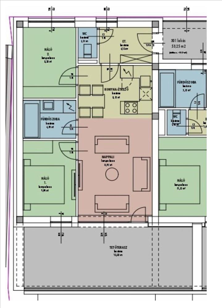 - amerikai konyhás nappali +2 külön nyíló hálószoba