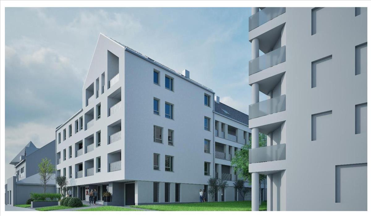 Társasház 4 lakószinten 26 lakással, 2 szintes teremgarázsban 26 parkolóállással, 1 irodával