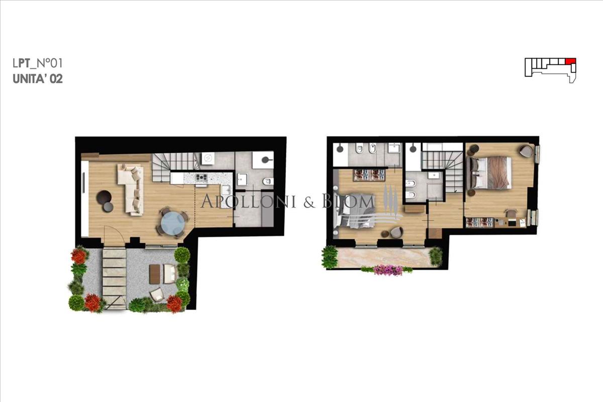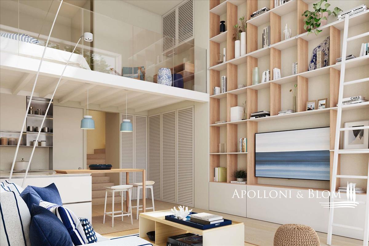 Az egyik hálószobában van lehetőség mezzanine kiépítésére, így helyet nyer egy harmadik ágy. A projekt kortárs szemlélettel értelmezi a hagyományos építészetet, ihletet merítve a klasszikus Liguriai halászfalvakból. Tiszta vonalak és elegáns részletek idézik a hagyományos anyagokat, például a pala tetőket és a Liguri-stílusú erkélyeket.