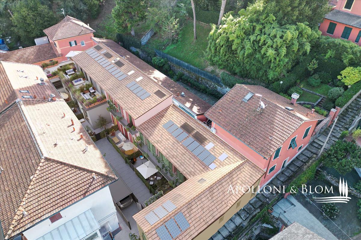 Santa Margherita Ligure közelében eladó egy mediterrán udvaron álló, újonnan épült teraszos ház. Energiaosztály szerinti besorolással, erkély és garázs, valamint a lassú életmód jegyében. Mindössze 500 méterre a tengerparttól található.Ez a lakás tökéletes egyensúlyt kínál a szépség, a funkcionalitás és a közösség között. A buja zöld udvarba nyíló otthon illata narancsvirág és mediterrán flóra. Ez az elegáns 1345 m2-es ház privát bejárattal, erkélykel, terasszal, két hálószobával, két fürdőszobával és garázzsal rendelkezik.