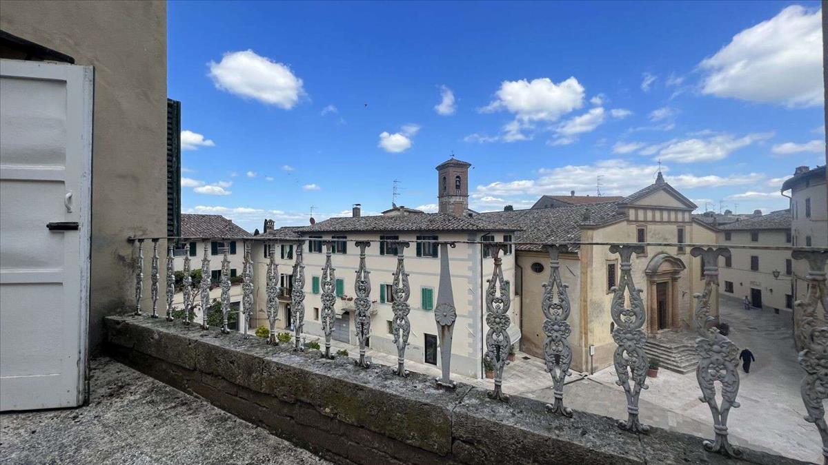 Elegáns, 17. századi apartman freskós mennyezettel és terasszal eladó a történelmi Cetona központjában, Siena megyében Toszkánában. Cetona főterére néz, egy bájos középkori falura a toszkán hegyekben. A második és az utolsó emeleten varázslatos kilátás nyílik a városra az ablakokról és a teraszról.