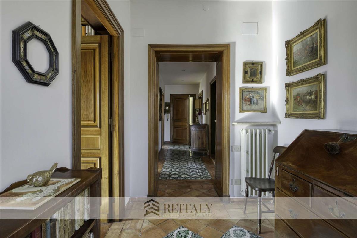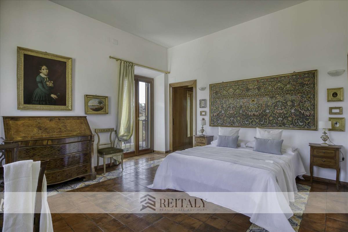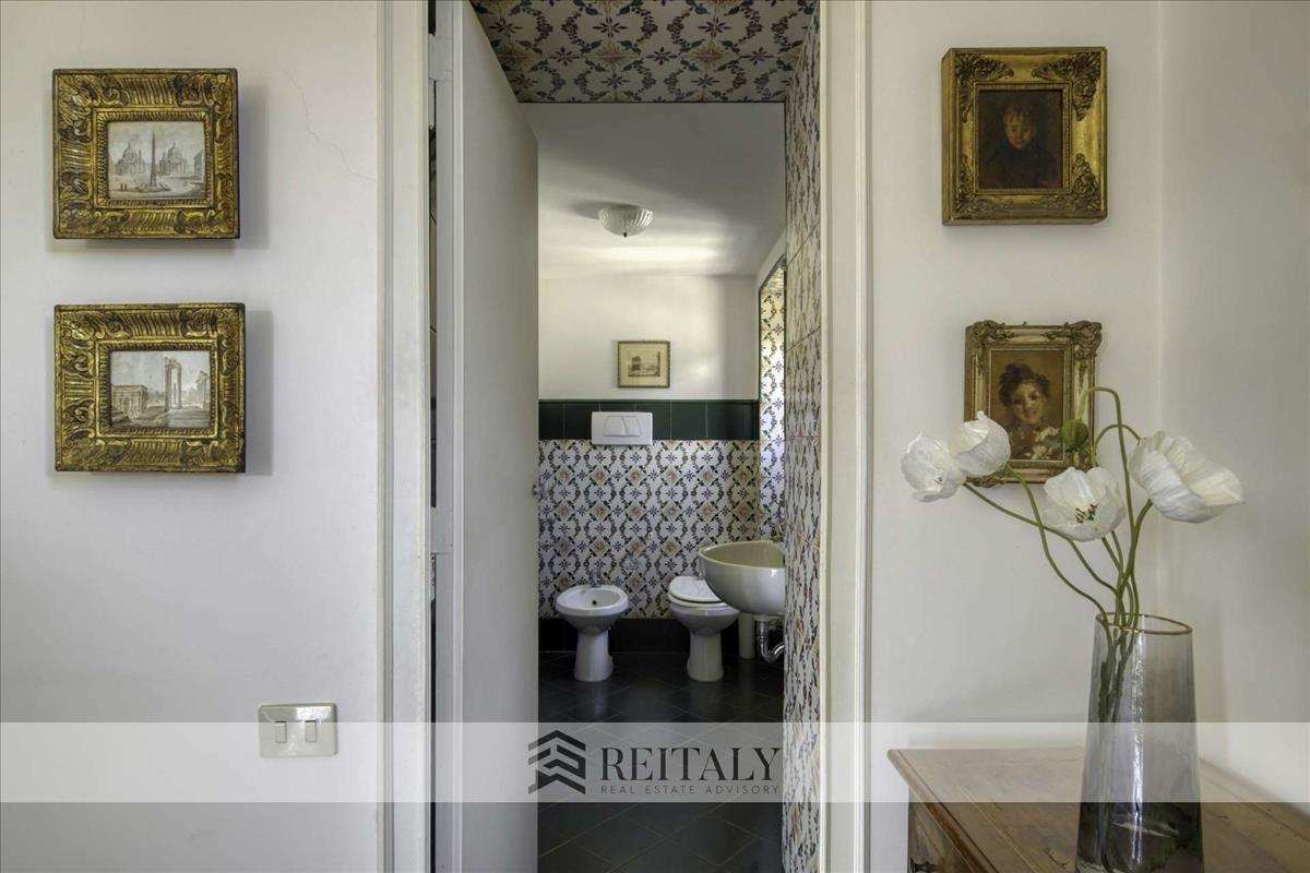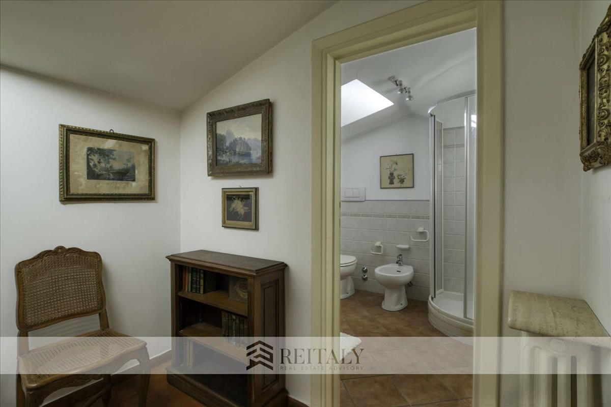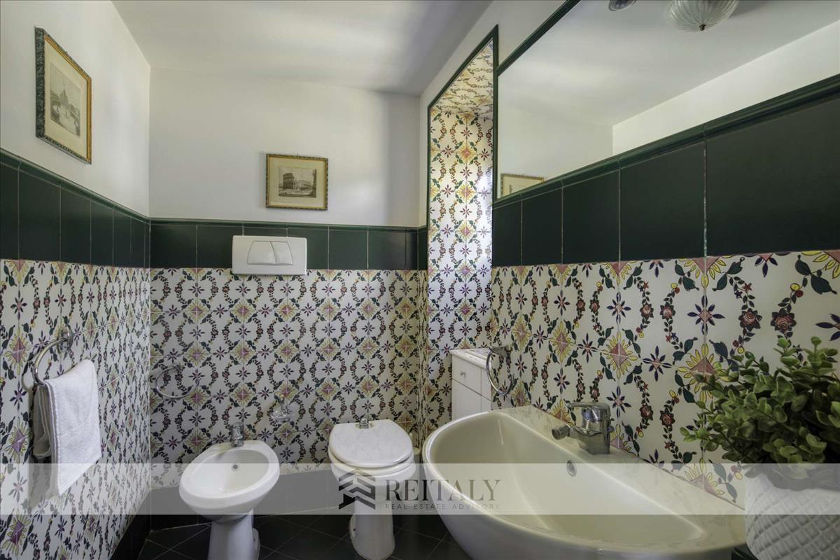Visszatérve a főemeletre, a fő lakosztályhoz tartozik egy teljes magasságú sétáló szekrényes gardróbszoba és egy kifinomult fürdőszoba, megvilágítva egy nagy panorámás ablakkal, amely lehetővé teszi, hogy minden nap a Pinció csodálatos kilátására ébredj.