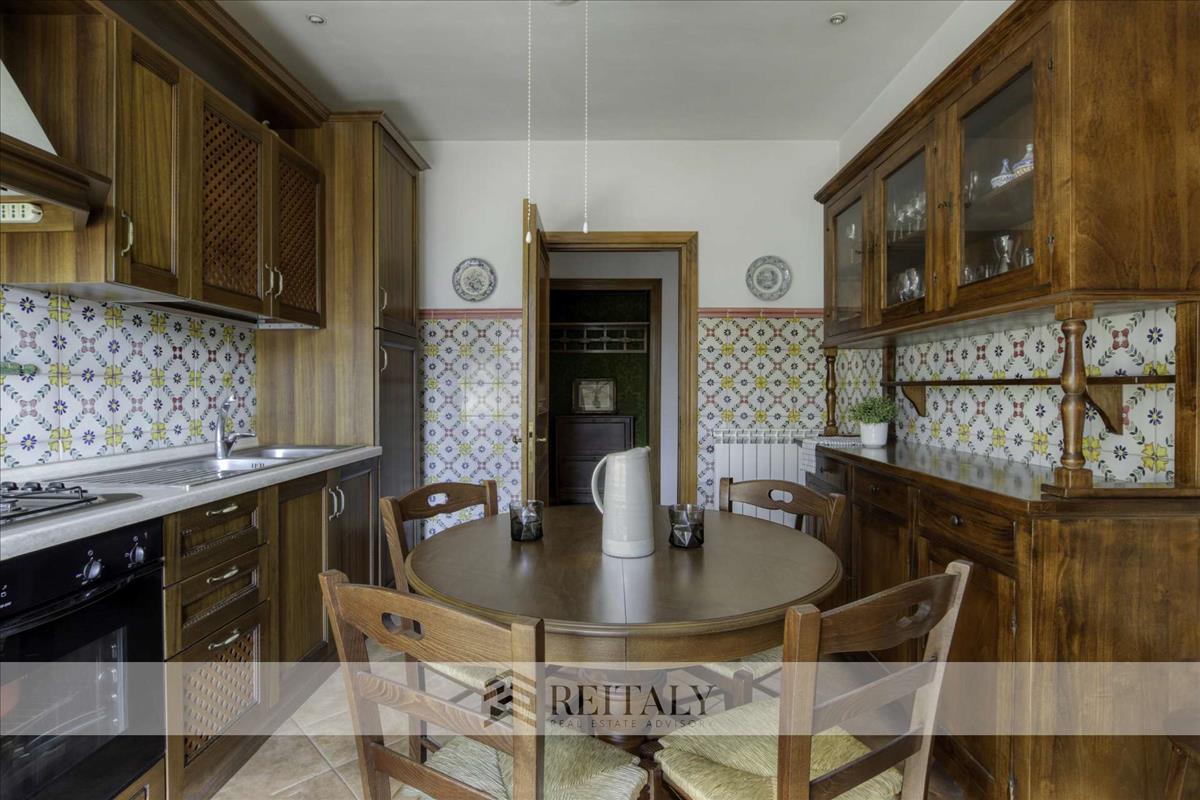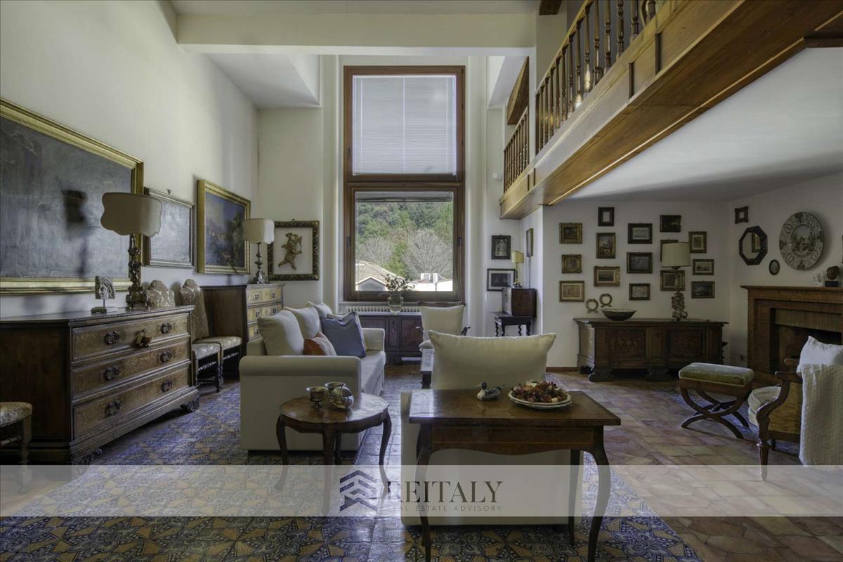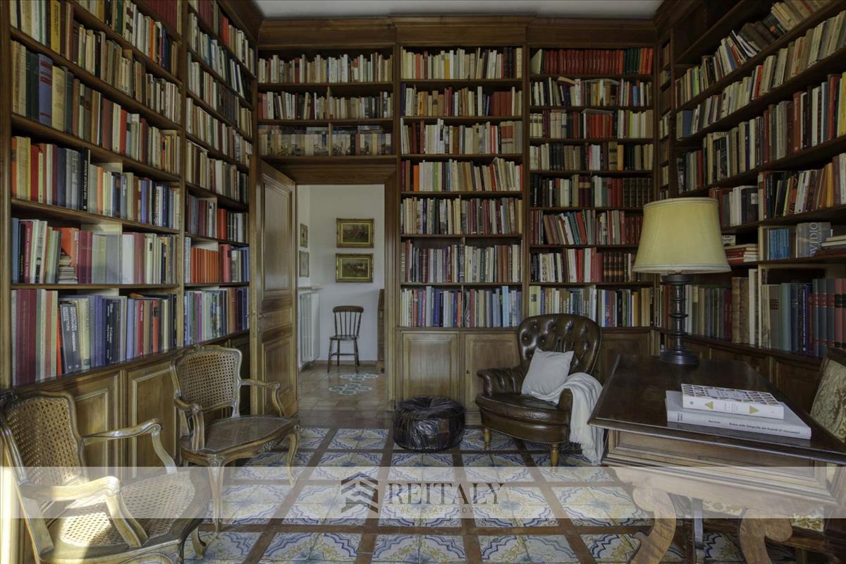 Terrakotta padló a Ceramica Vietri Antico kollekciójából, a magas mennyezet és a falak díszes boiserie-je idézik a történelmi otthonok hangulatát.