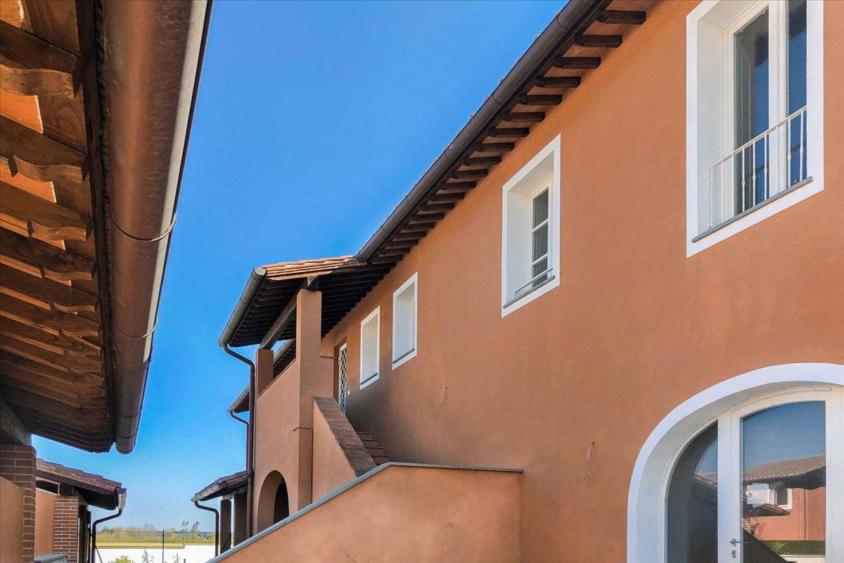 A rusztikus toszkán stílusú tornácos ingatlan, félpanziós, három hálószobás és egy tanulmány, fotovoltaikus rendszerrel, kerttel és garázzsal eladó Calcinaia, Pisa.Az ingatlan egy farm birtokon belül, az Arno folyó partján termesztett földekkel körülvéve található. A lakókomplexum a farm és a falu stílusát idézi, különálló és félig különálló házakkal, kertekkel és magánbejáratokkal. Egy olyan komplexumban helyezkedik el, amely majdnem befejeződött, beleértve a köztereket és kerteket, néhány erdei- és sportpályát, valamint a városközpont felé vezető kerékpárutat.