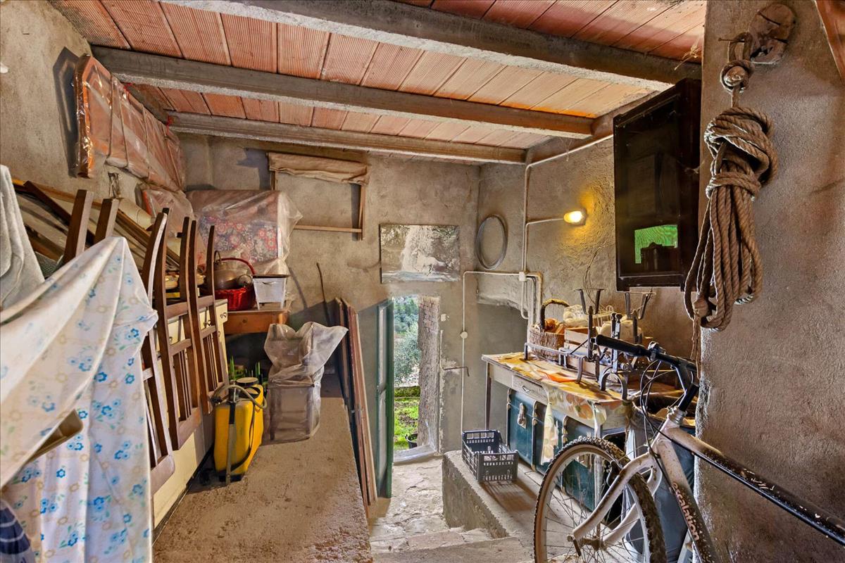Az első emeleten található egy nappali panorámás kilátással és egy erkély, továbbá konyha, két hálószoba és egy fürdőszoba. A földszinten és az alagsorban két pince vár rád, amelyek megőrizték a kőfalakat és a középkori boltíves mennyezetet; tökéletesek rusztikus kocsmának vagy külön nappalinak. A három emelet belső összekapcsolása megoldható. Hátsó ajtó egy romantikus teraszos kerthez vezet nyitott kilátással, ahol a jelenlegi tulajdonos is termel egy kis növényi kertet.