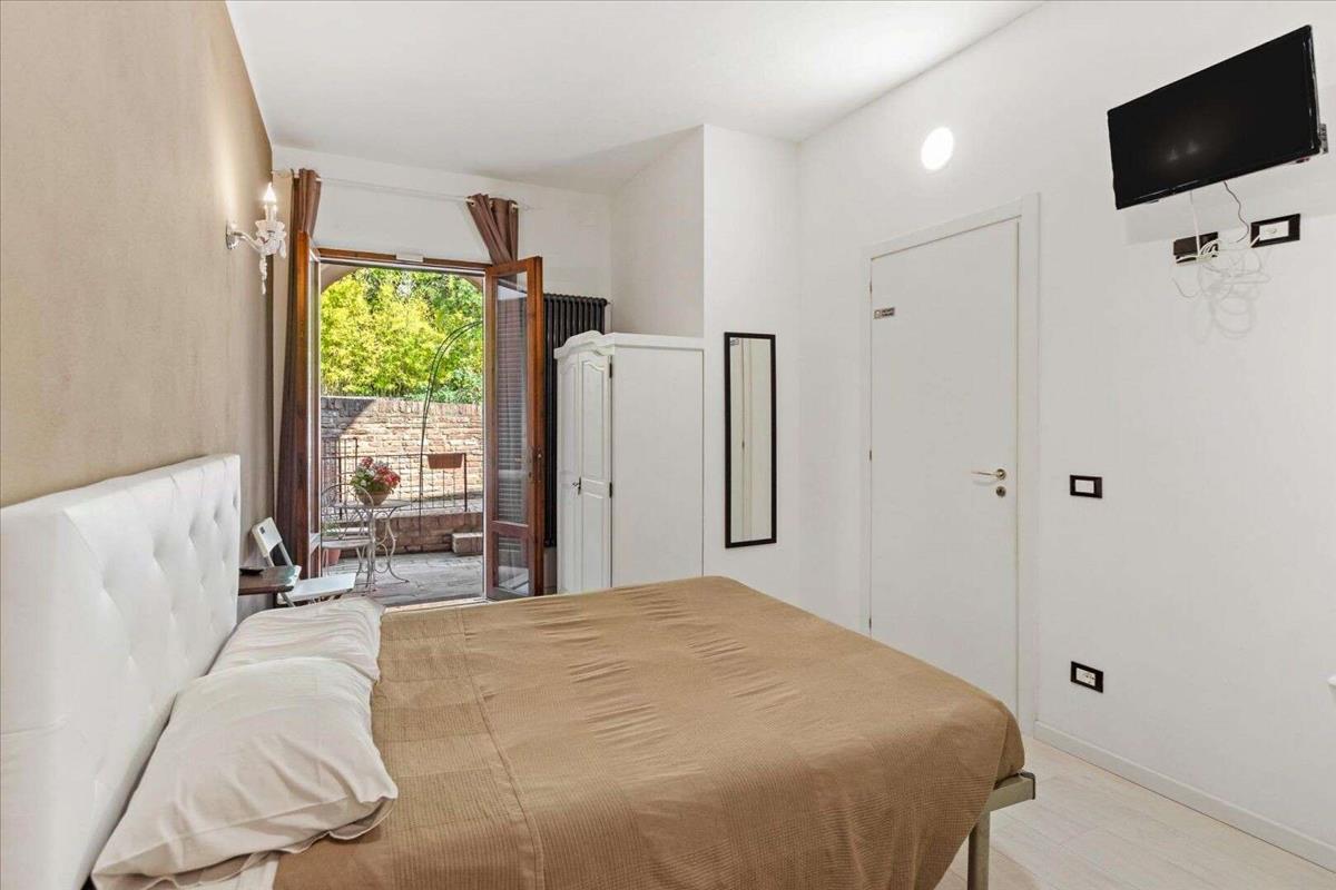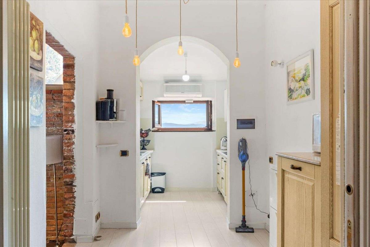 Kilátás délnyugati irányba Siena vidékre és a Sant'Eugenio kolostorra nyílik. Ez a rusztikus stílusú rezidencia privát és csendes helyen található, felhajtó-hozzáféréssel és automatikus kapuval a város szívében, Siena. A lakásnak két bejárata van: az egyik a fedett verandán keresztül tolóüvegajtóval, a másik a portico felől érhető el. Mindkettő antik terrakotta padlóval van burkolva.