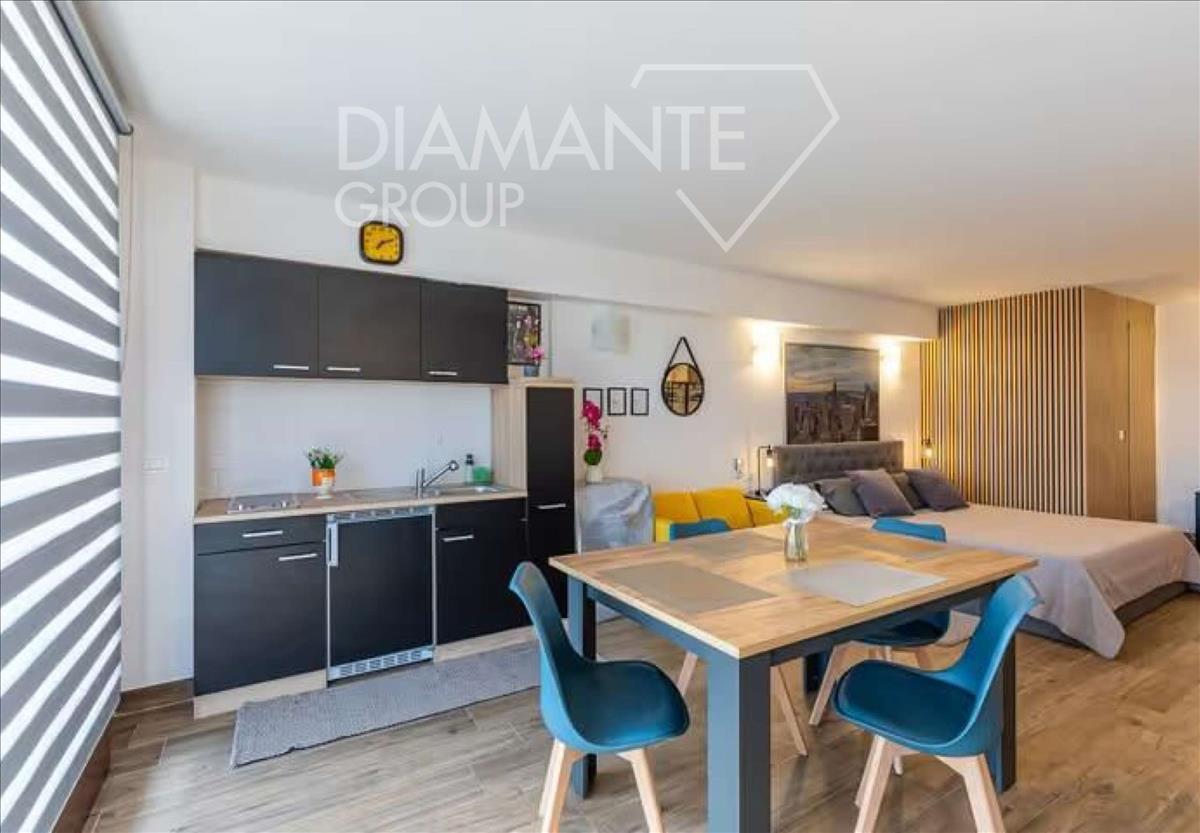 A stúdióhoz tartozik egy külső kikövezett terület, körülbelül 25 m²-es, és egy parkolóhely.