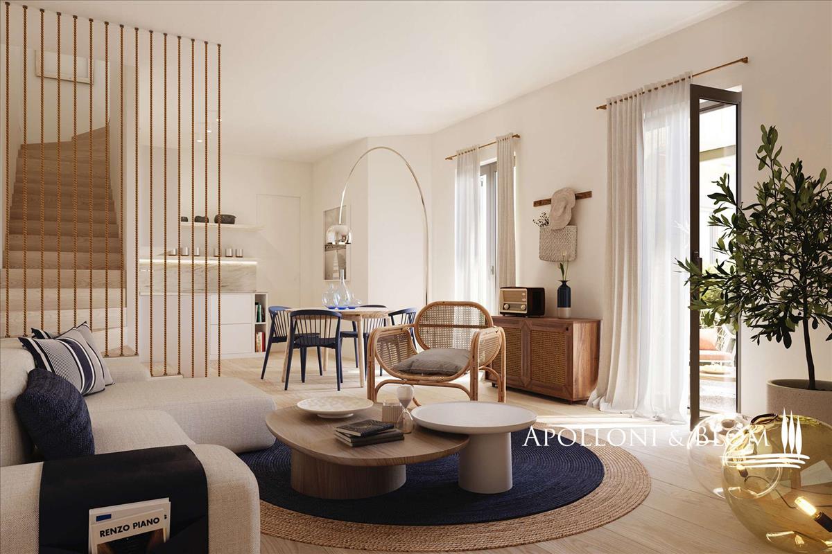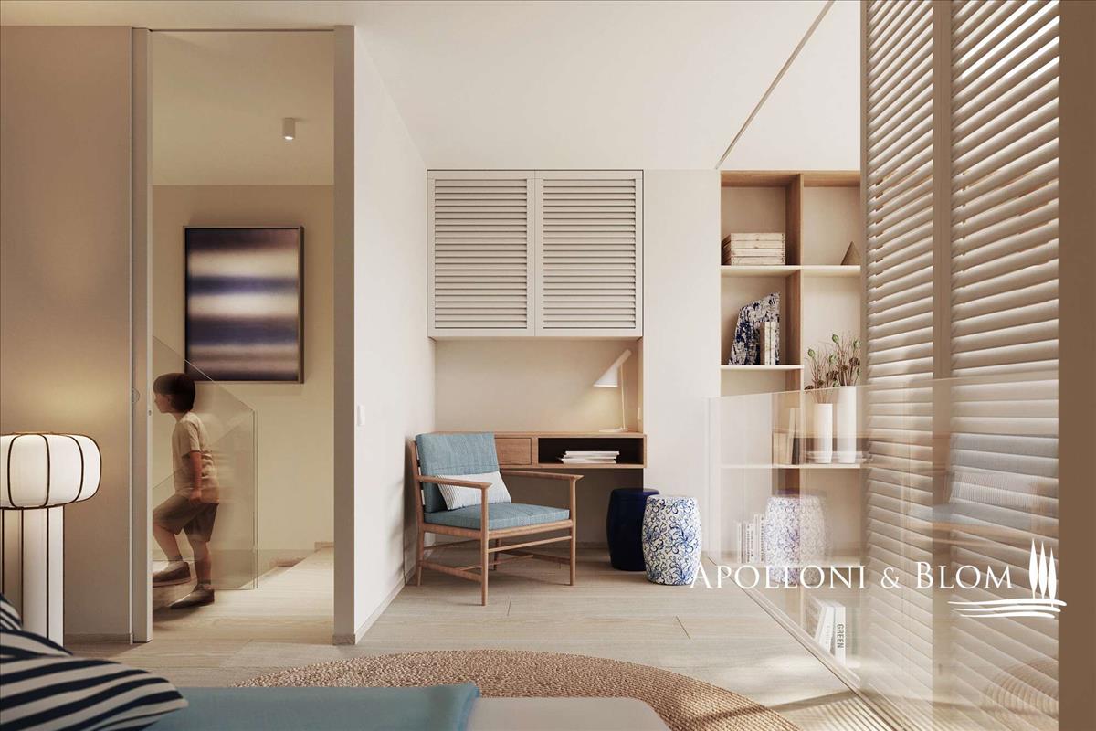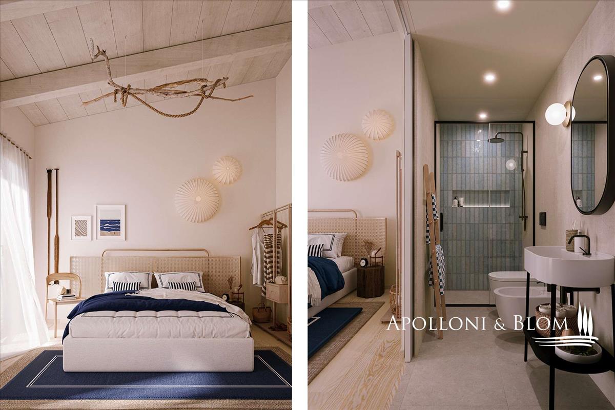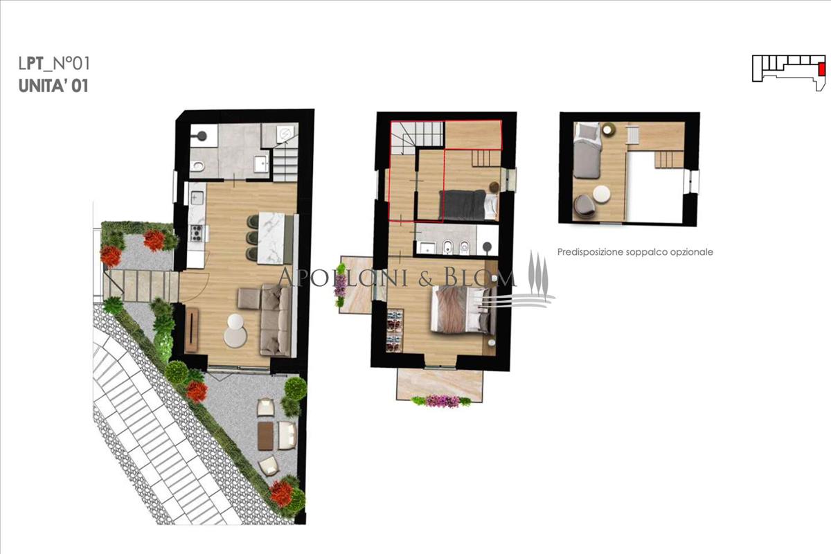 Az egyik hálószobában lehetőség van egy galéria hozzáadására, így helyet kaphat egy harmadik ágy. A projekt kortárs szemlélettel értelmezi a hagyományos építészetet, a klasszikus Liguri halászfalvak ihletét felhasználva. Tiszta vonalak és elegáns részletek emelik ki a pala tetőket és a tipikus Liguri-stílusú erkélyeket.