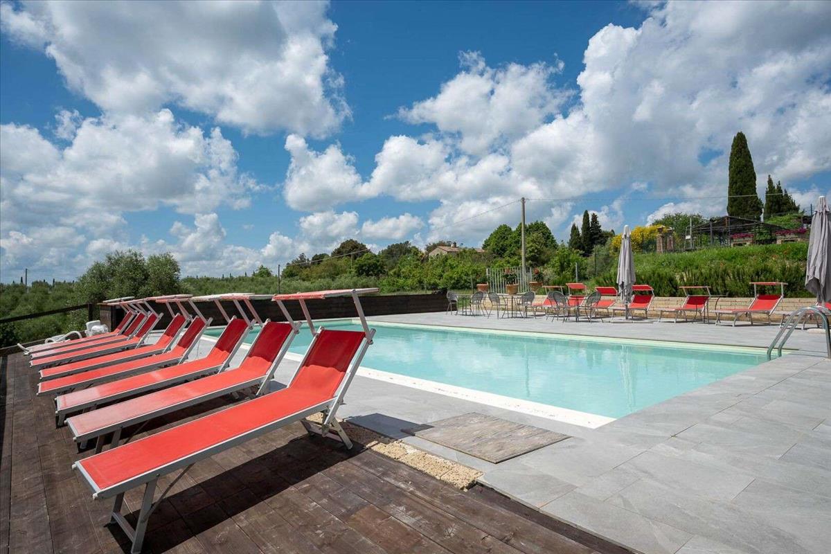 Casa a Glicine ritka lehetőséget kínál arra, hogy Toszkána szívében élj, ötvözve a rusztikus lakás vonzerejét a tágas zöldterületekkel, hogy élvezd a sienai vidék nyugalmát és szépségét.