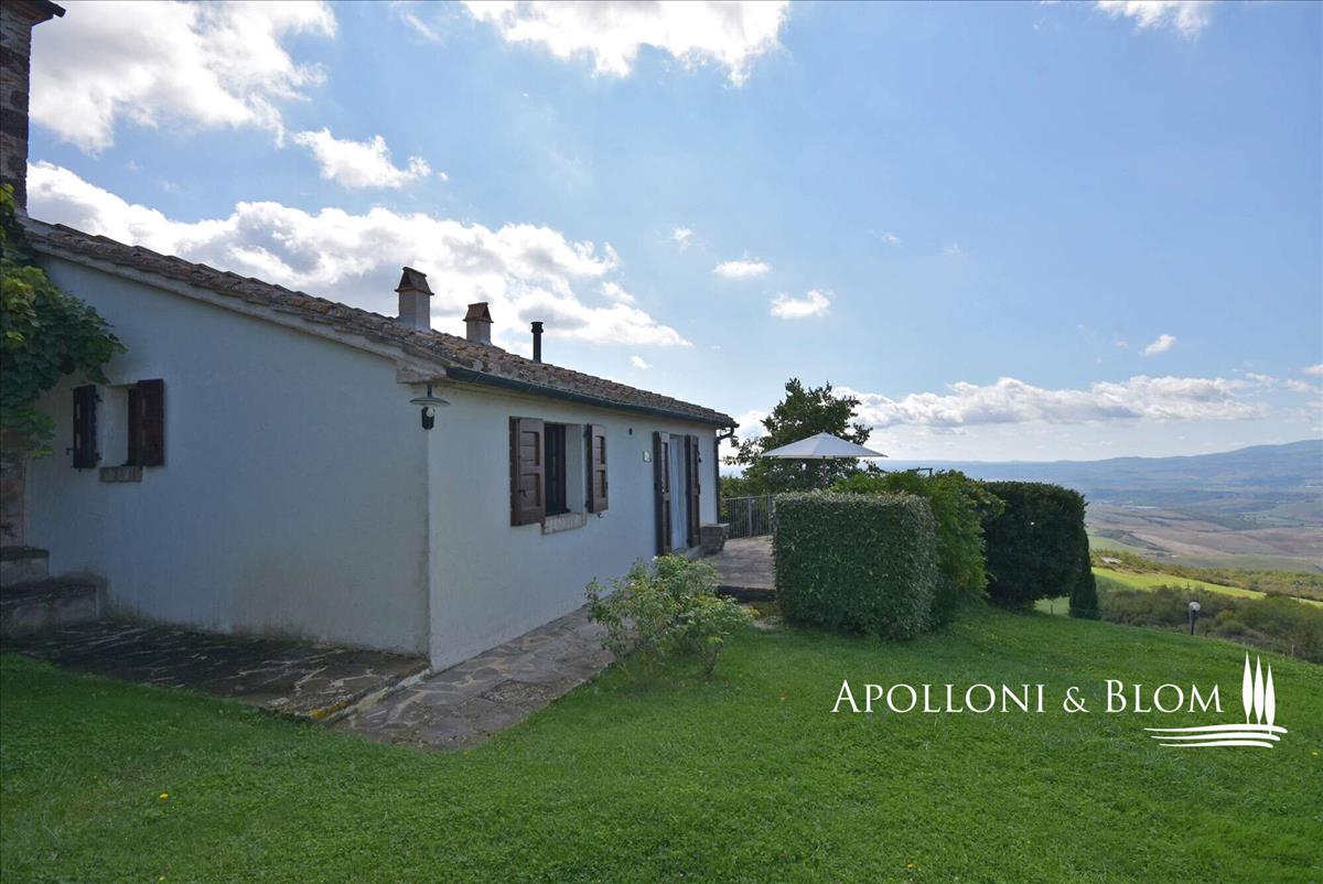 Egy teljesen felújított parasztház úszómedencével, földszinti panorámás terasszal és kilátással a Val d’Orcia felé eladó Radicofaniban.A dél-toszkánai gördülő dombok között, mindössze egy kényelmes sétára Radicofani történelmi falujától, ez az elegáns ház lehetőséget kínál a Val d’Orcia szívében egy kifinomult pihenésre.