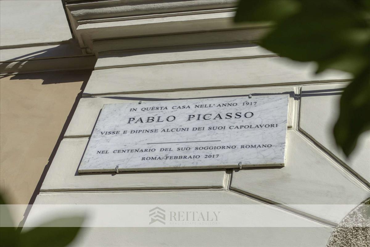 Eladó elegáns és világos apartman a történelmi Via Margutta-n, Róma szívében.Az apartman a legfelső emeleten található egy tekintélyes 19. századi épületben, amely világhírű művészeknek adott otthont, köztük Picasso.