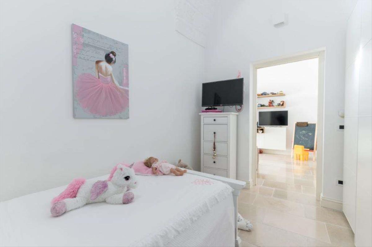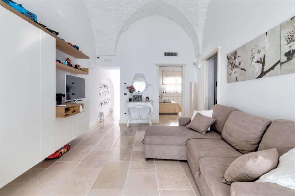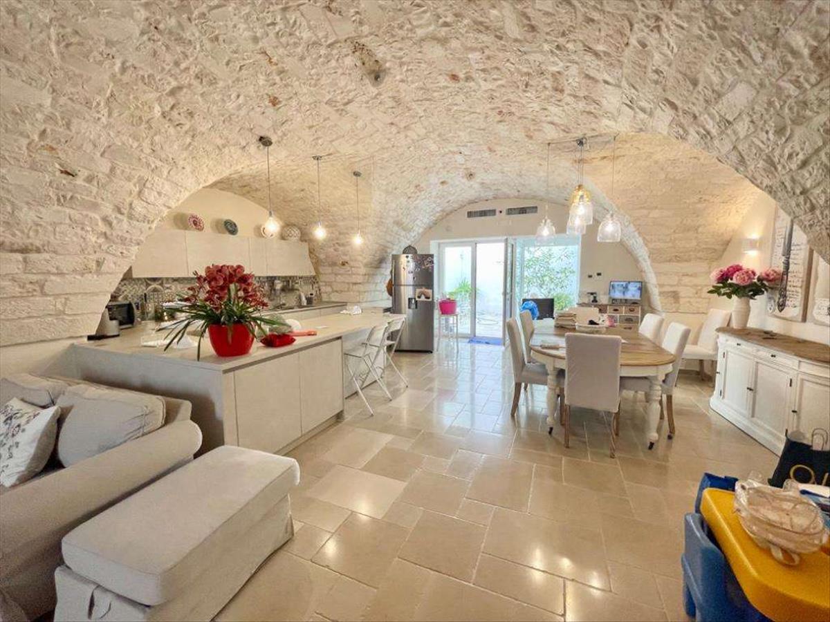 Gyönyörűen felújított, három hálószobás ingatlant találsz Carovigno központi történelmi negyedében. Az ingatlant a legmagasabb szintre újították fel, és teljesen költözhető. Két bejárat van az utcáról. A főbejárat az alsó szintre vezet, ahol a régi istállókból egy hatalmas, nyitott terű konyha és nappali született, kőboltozatos mennyezettel. Az előtérben található társalgóban egy nagy kőkandalló van, hátul pedig az étkező és a konyha. A padló polírozott travertin kő, és a padló alatti fűtés mindenhol jelen van. Padlótól mennyezetig érő üvegajtó nyílik a saját hátsó kertbe, így a konyha bőséges természetes fényt kap. Ezen a szinten van egy családi fürdőszoba. Egy csigalépcső vezet az első emeletre.Itt található egy újabb társalgó és fürdőszoba, plusz három hálószoba boltozott mennyezettel. Az elsődleges hálószobához tartozik egy walk-in gardróbszoba és egy saját fürdőszoba, boltozott mennyezettel. Van hőszivattyús rendszer, amely minden szobában biztosítja a fűtést és a hűtést. Ez az emelet a saját utcai bejáratáról és folyosójáról megközelíthető. A csigalépcső a hatalmas, saját tetőteraszon folytatódik. Ez a hely tökéletes esti aperitifre, és kiváló lehetőség egy kültéri konyhával és pavilonnal történő szórakoztatásra.