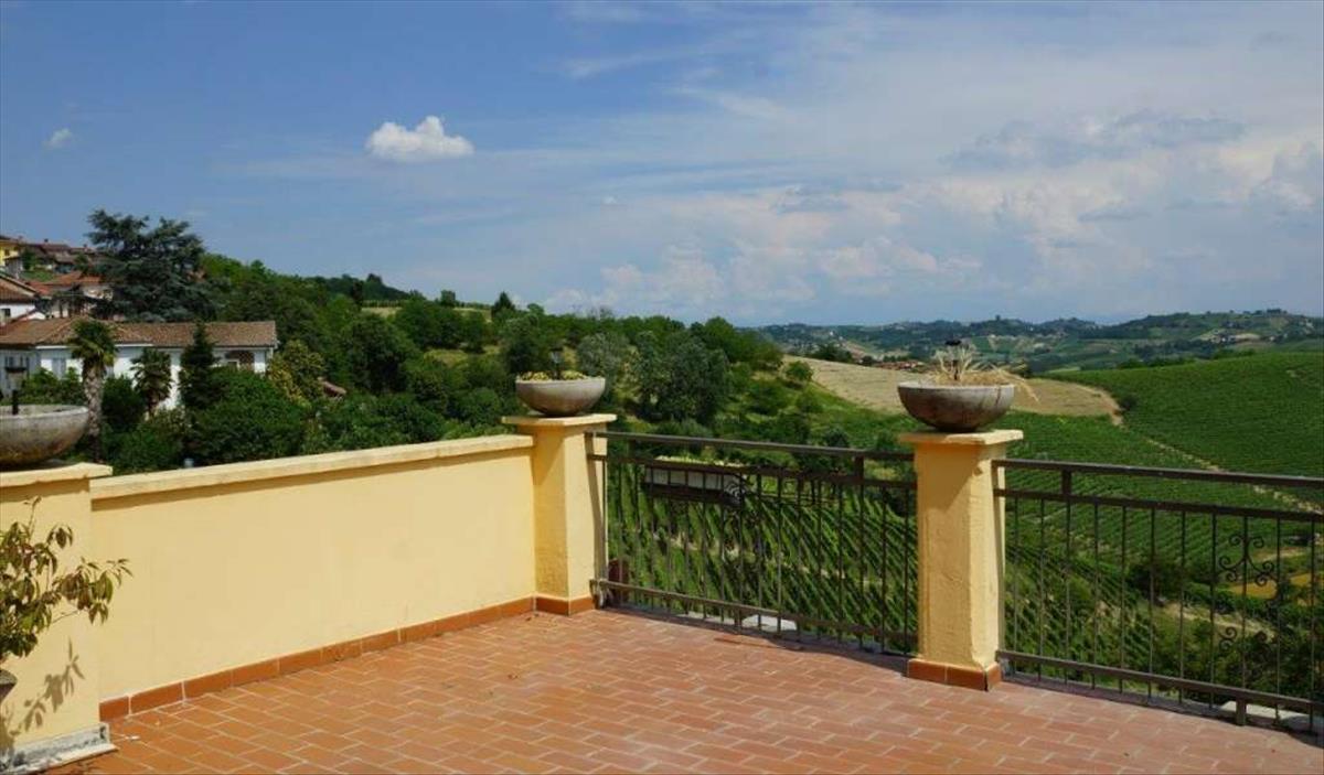 Ez a klasszikus piemonti townhouse Montegrosso d'Asti falujában található a hegytetőn, és a legcsodálatosabb kilátás nyílik a gördülő szőlőültetvényekre a völgyek felé.Mivel közvetlenül délre néz, élvezze a napos helyzetet, ahonnan a napfelkeltét és a naplementét is megcsodálhatja a nagy panorámás teraszokról. Az udvar tágas, és a másik két apartmannal közös.