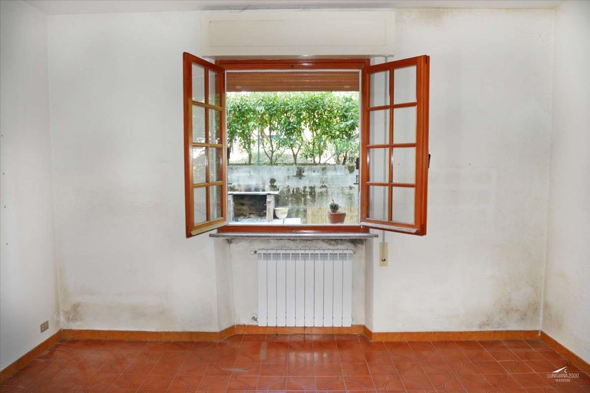 Öt percre a központtól Sarzanában egy apartman található.A földszinten garázs és pince van, a konyha, a nappali terasszal és a privát kert pedig ezen a szinten található.