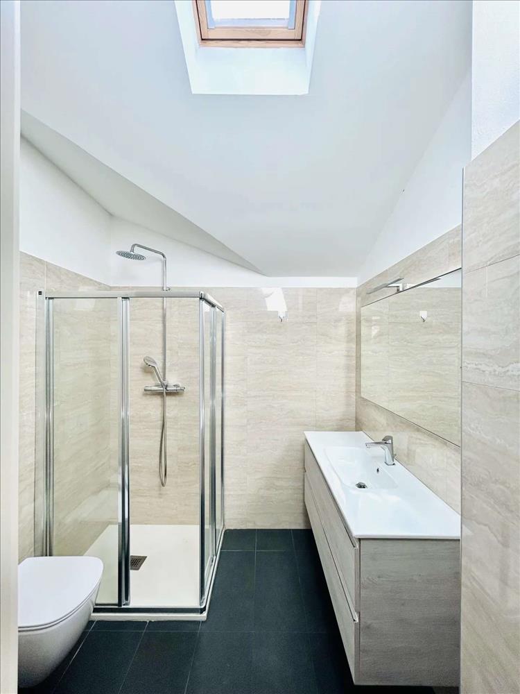 Eladó Sanremo, a híres La Brezza területén, egy csodálatos, újonnan épült apartman mindössze lépésre a tengertől. Ez a modern, világos és barátságos lakóhely két emelettel rendelkezik, teljes területe 130 m²-es, egy belső lépcsőház köti össze.Az első emeleten egy tágas nappali nyitott konyhával található, amely közvetlen hozzáférést biztosít a teraszhoz, ideális a szabadtéri pihenéshez. Ez a szint modern és funkcionális fürdőszobával rendelkezik, zuhanyzóval.