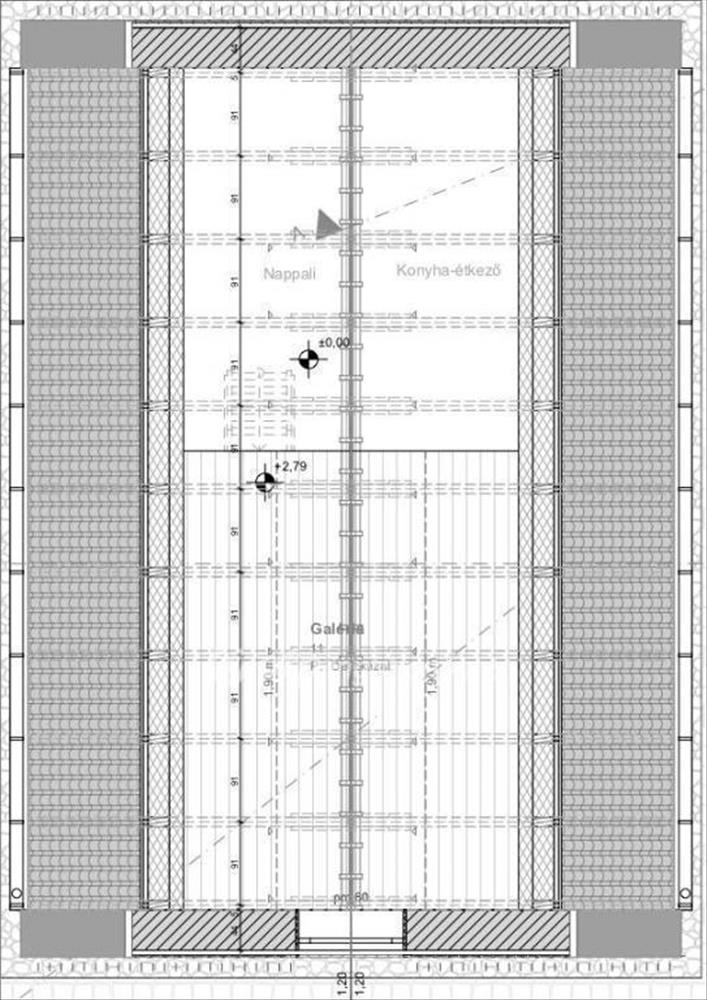 A harmadik szoba a lakóblokk fölötti részen, a 30 négyzetméteres galérián került kialakításra.