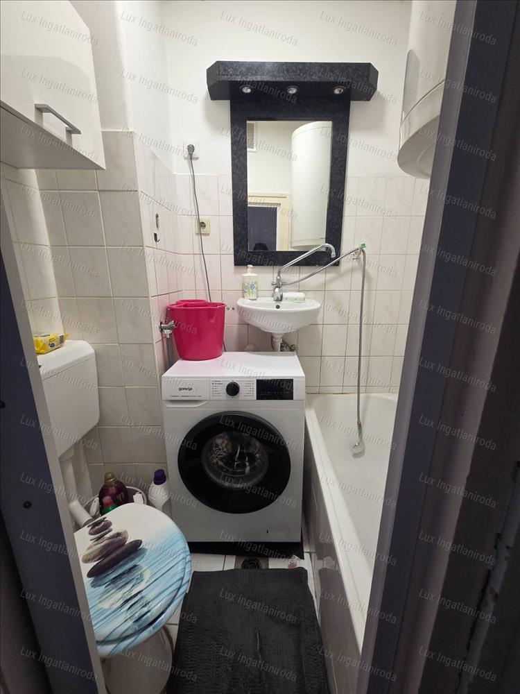 - Szobában laminált parketta a többi helyiség járólappal burkolt.