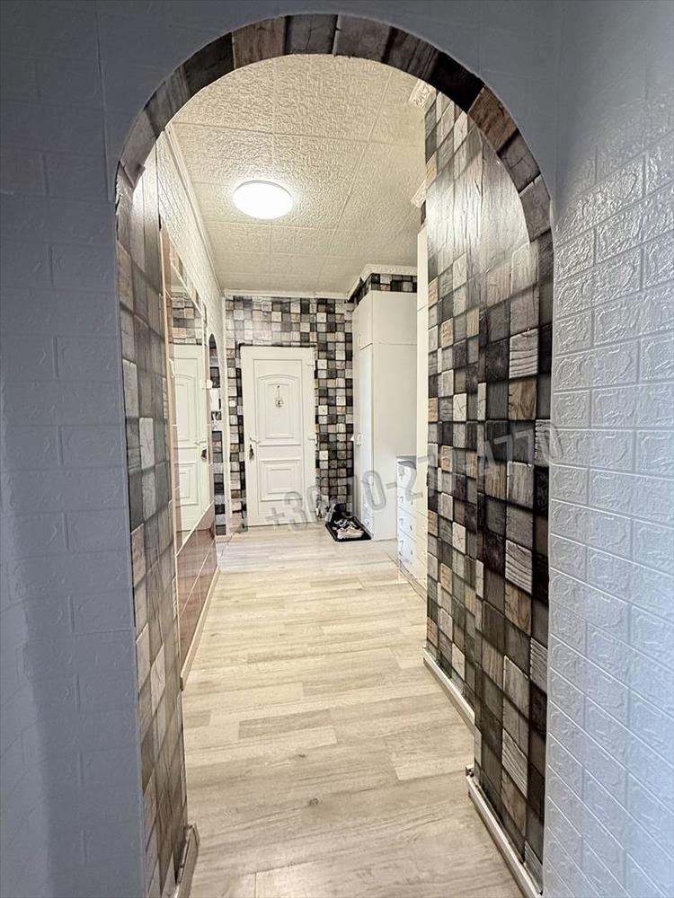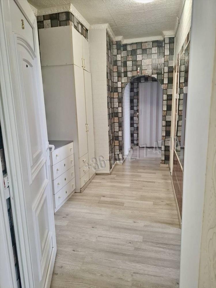 A lakás megjelenése fiatalos, tapétázottak a falai, a szobákban laminált parketta, a többi helyiségben pvc a padlóburkolat.