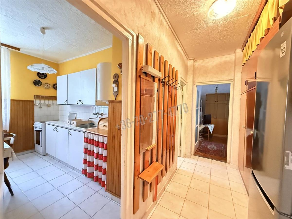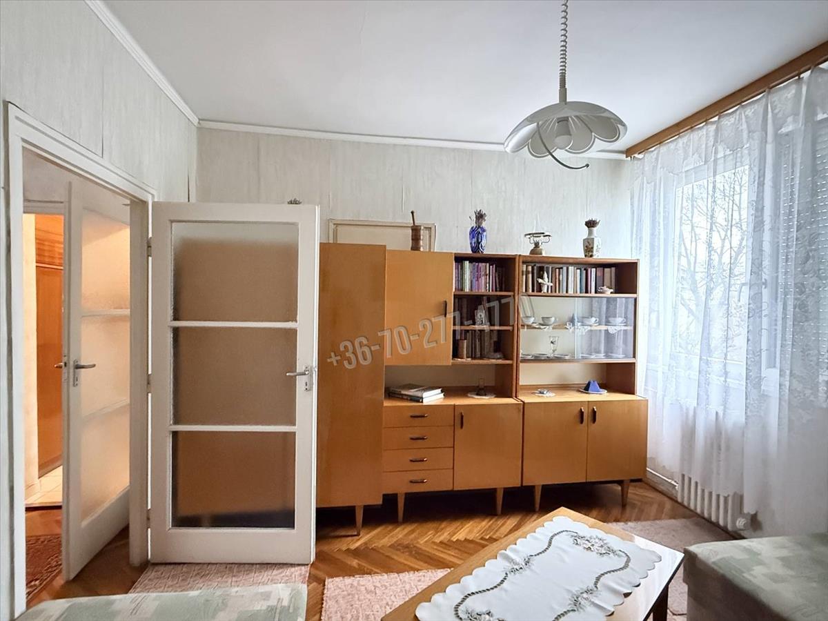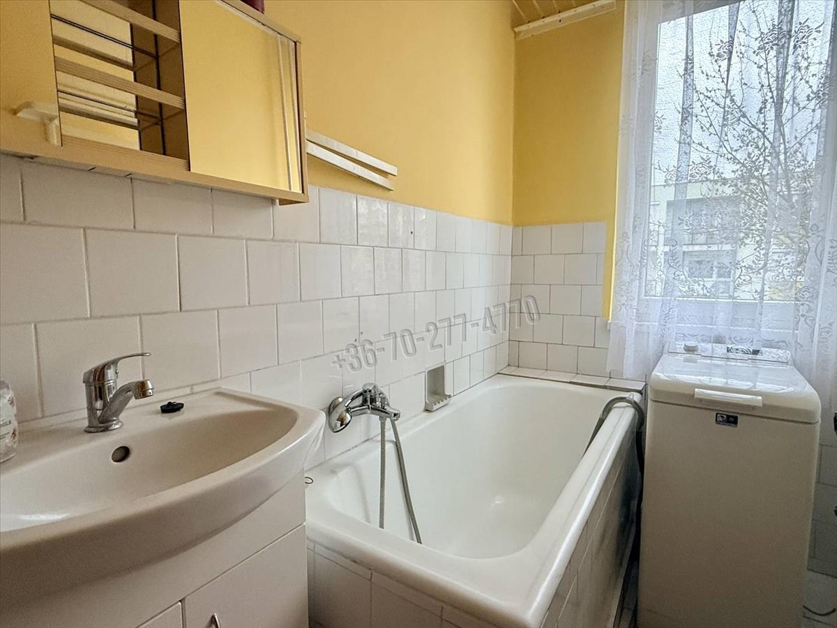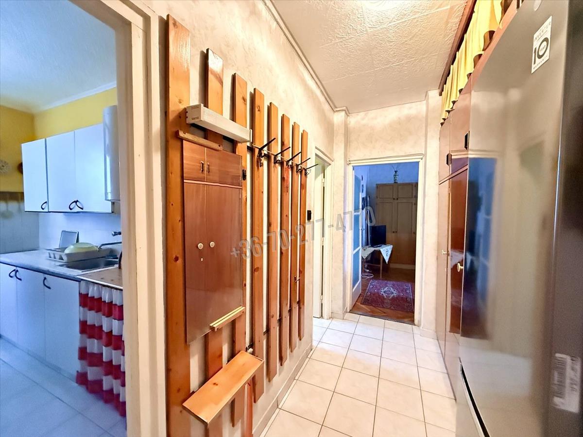 Elrendezését tekintve az előszoba fogad, innen nyílik a tágas nappali (17 m²), egy hálószoba, konyha, kamra, illetve egy fürdőszoba (káddal) és wc, valamint egy 5 m²-es, zöldövezetre néző erkély is tartozik hozzá. a helyiségek világosak, kiváló a benapozásuk és a kényelmet tovább növeli az összkomfort, a távfűtés (a radiátorok állítható szelepei és a hőmennyiségmérők felszerelése folyamatban - elnyert pályázat miatt többletköltség nélkül hamarosan megvalósul) és 2 rétegű thermoplan ablakok. a melegvizet villanybojler állítja elő, mely éjszakai kedvezményes villanyórára van kötve és a konyhában lett elhelyezve.