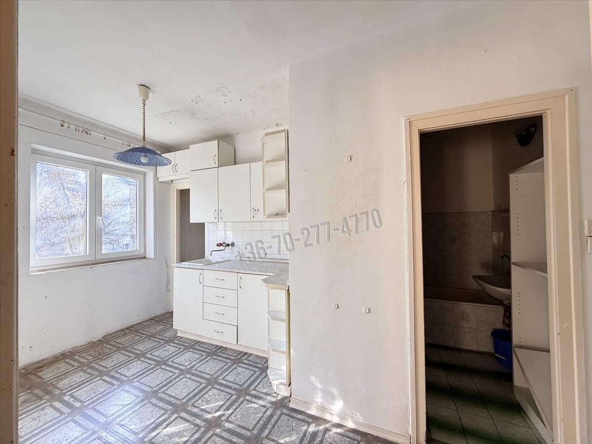 A felújítandó állapotú lakás akár átalakítható amerikai konyha-nappali plusz egy hálószobás elrendezésűre, de a jelenlegi elrendezés szerinti nagy konyha és egy nagy szoba kialakítás mellett is kedvelt lakástípus.