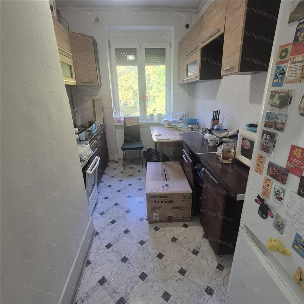 - Elrendezése: konyha, kamra, fürdő-wc egy helyiségben, 2 szoba, erkély
